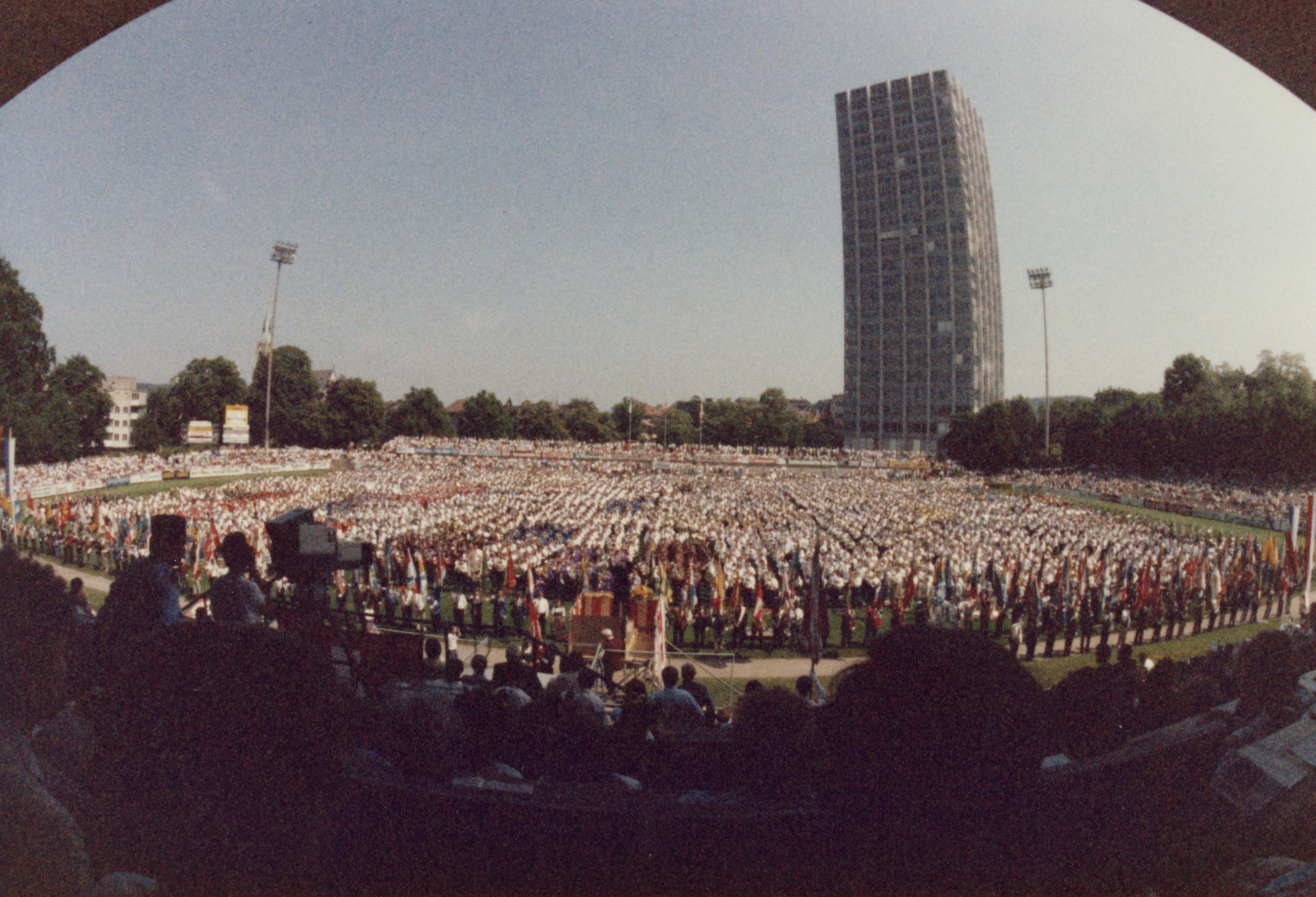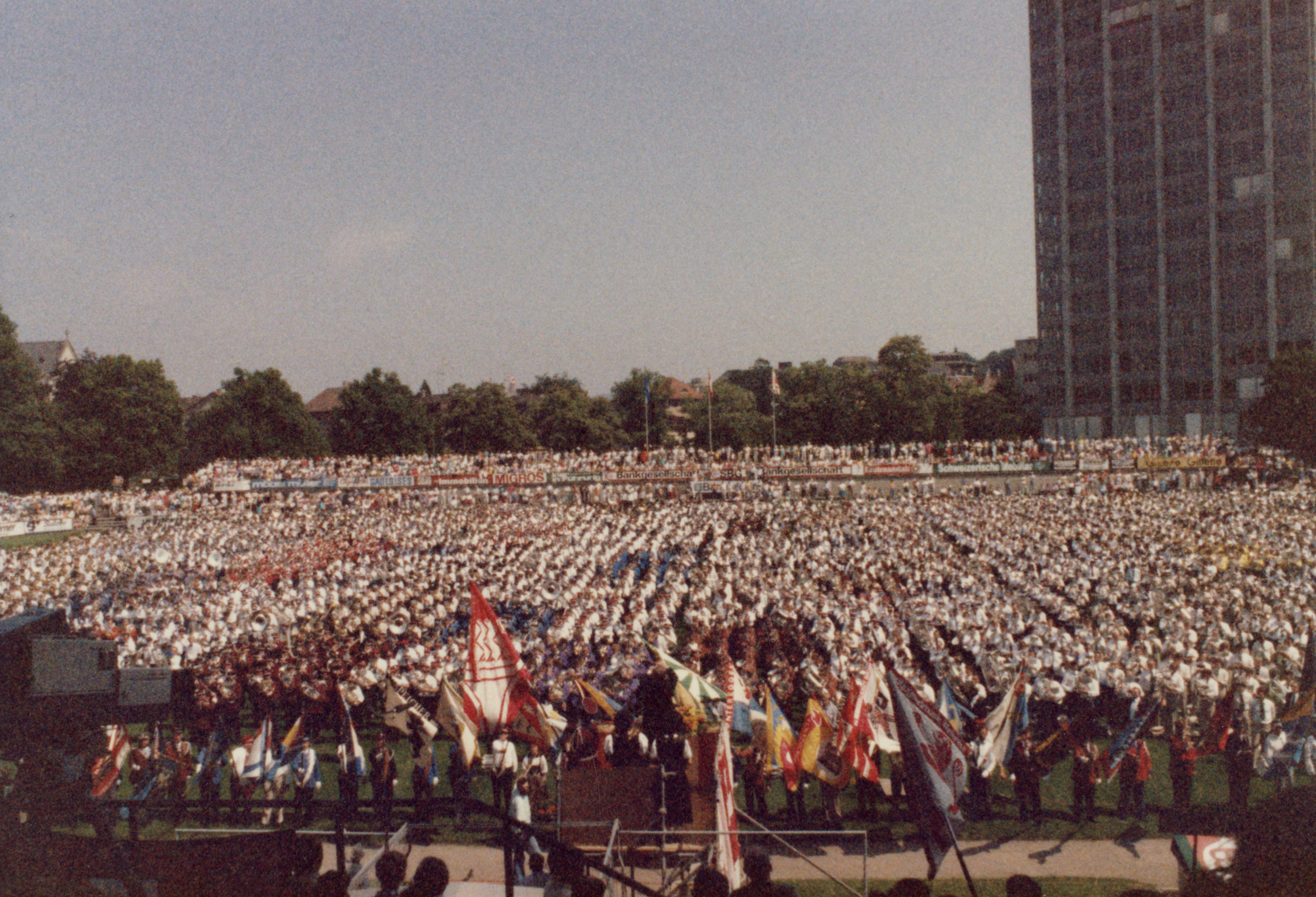 An den Wochenenden vom 7./8. und 14./15. Juni 1986 fand in Winterthur das 28. Eidgenössische Musikfest statt. Die Eulachstadt mit ihren 90'000 Einwohnenden hatte als Gastgeberin des Eidgenössischen Turnfests im Jahr 1984 gezeigt, dass sie Grossveranstaltungen stemmen kann. Das OK des Musikfestes hatte aber Pech: Zum Auftakt gab es schlechtes Wetter, was die Planung durcheinanderbrachte. Statt wie im Festprogramm angegeben, fand die Übergabe der Zentralfahne der Lausanner Delegation, die das Fest 1981 ausgetragen hatte, nicht im Park der Villa Bühler, sondern im Festzelt auf der Schützenwiese statt. Das Publikum und der Journalist der Neuen Zürcher Nachrichten bemerkten dies jedoch nicht. Der damalige Stadtpräsident und OK-Präsident Urs Widmer (FDP) bot dem Journalisten darauf spontan eine Mitfahrgelegenheit zur Schützenwiese an.