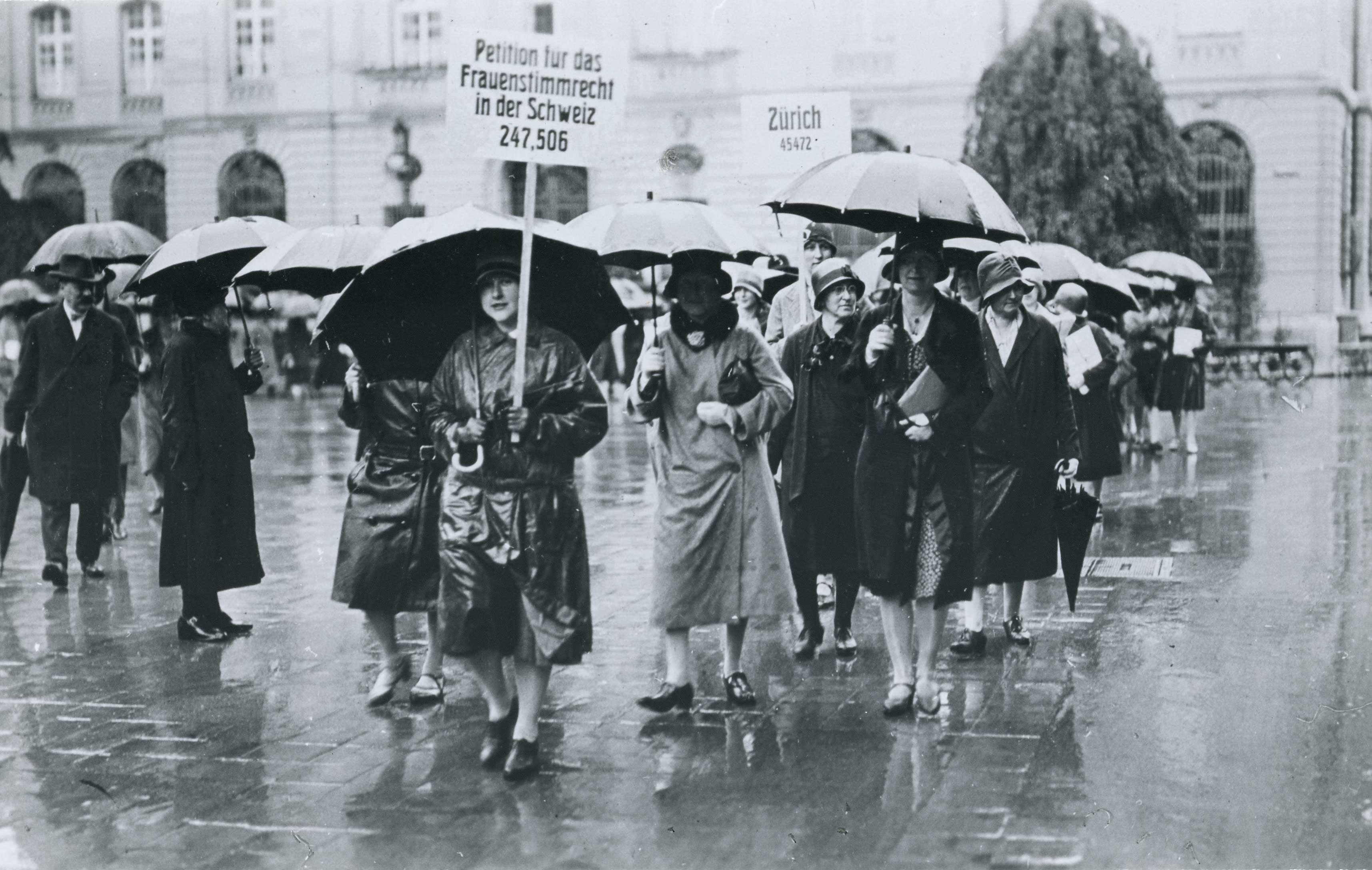 Als am 6. Juni 1929 eine Schar von gut 150 Frauen aus der ganzen Schweiz bei strömenden Regen durch die Berner Altstadt zog und eine Petition für das Frauenstimmrecht im Bundeshaus einreichte, war die Einführung eines solchen noch in weiter Ferne. Aber es war immerhin ein Anfang.