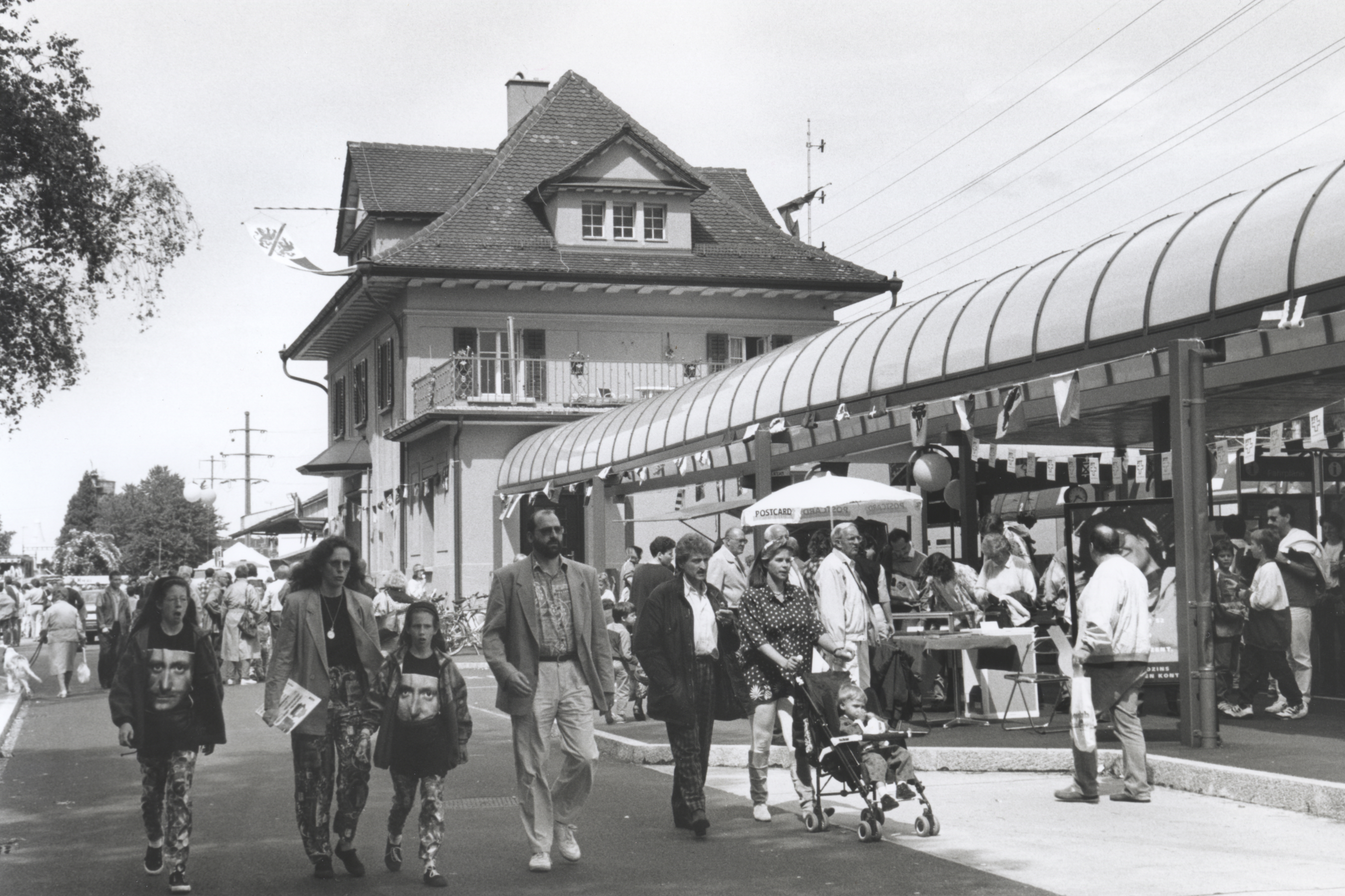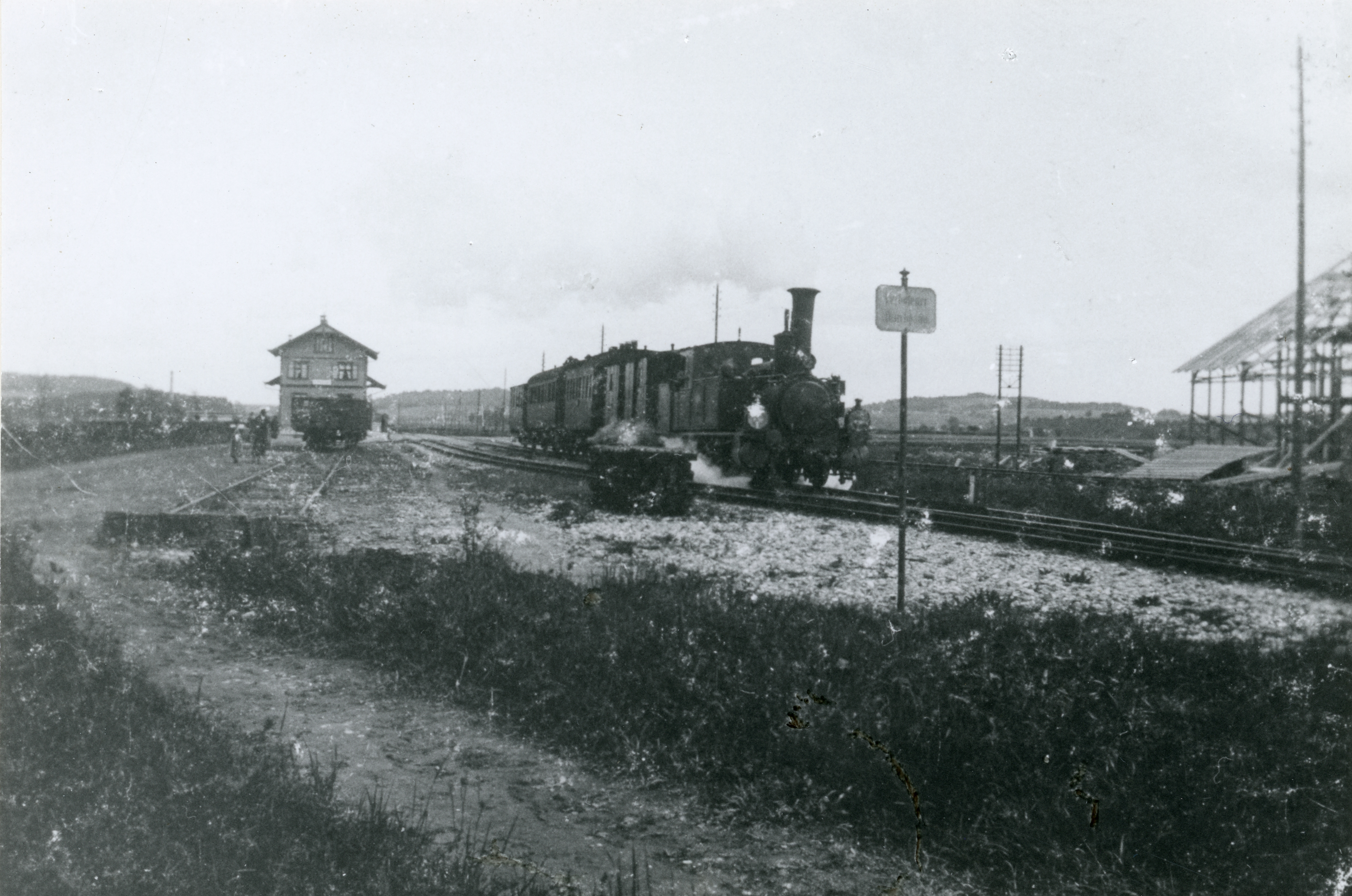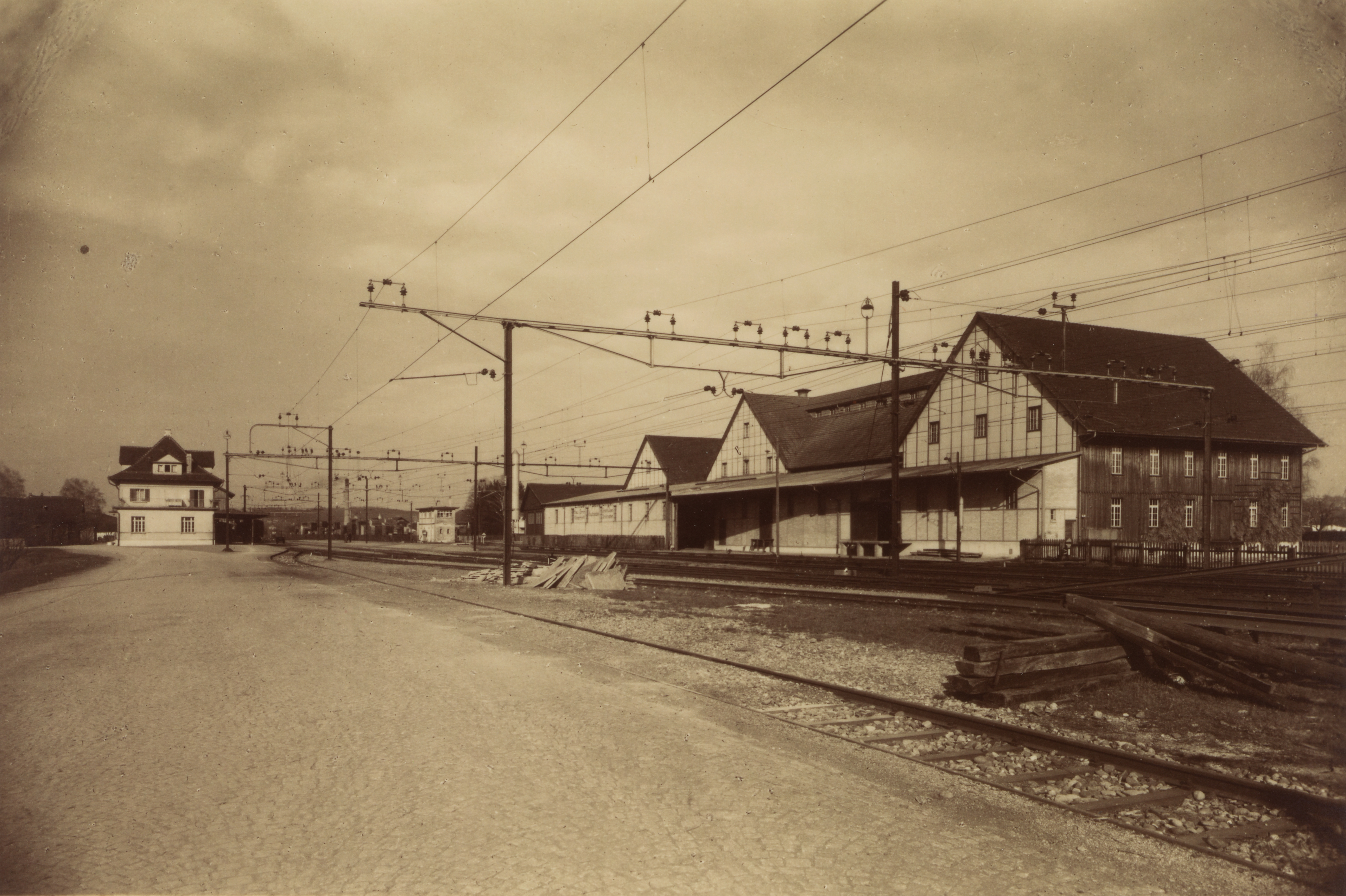 1855 eröffnete die Nordostbahn die Linie Zürich-Winterthur-Romanshorn. In Oberwinterthur hielt der Zug nicht an. Damals hatte die Gemeinde Oberwinterthur noch keinen Bahnhof. Gut zwanzig Jahre später eröffnete die Schweizerische Nationalbahn eine weitere Linie, die Oberwinterthur passierte: die Strecke von Winterthur nach Etzwilen, Singen und Konstanz. Mit der neuen Zuglinie wurde 1875 das erste Bahnhofsgebäude in Oberwinterthur errichtet. Das einfache Stationsgebäude mit Schalterraum für den Billetverkauf, einer Wohnung und einem Güterschuppen baute Cornard Bär.