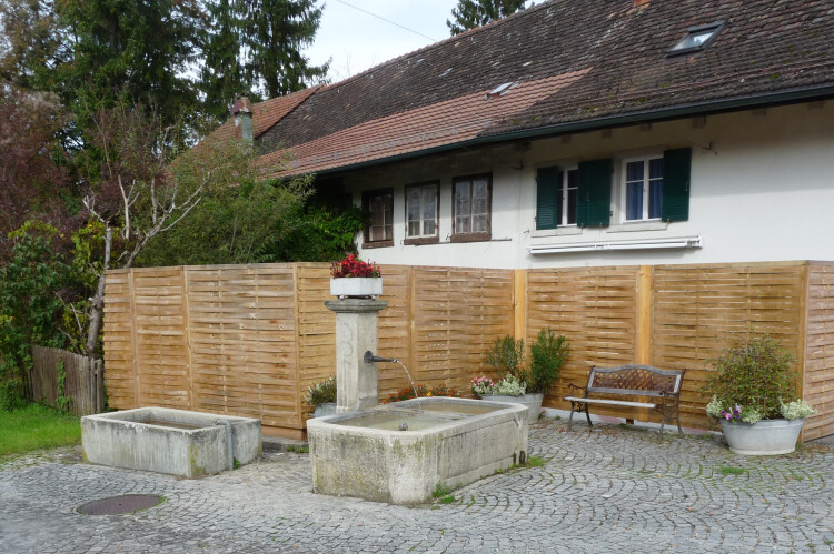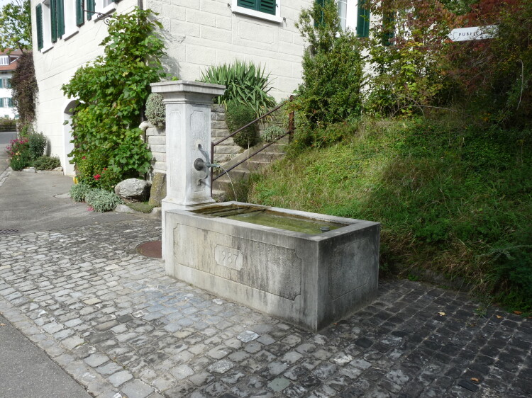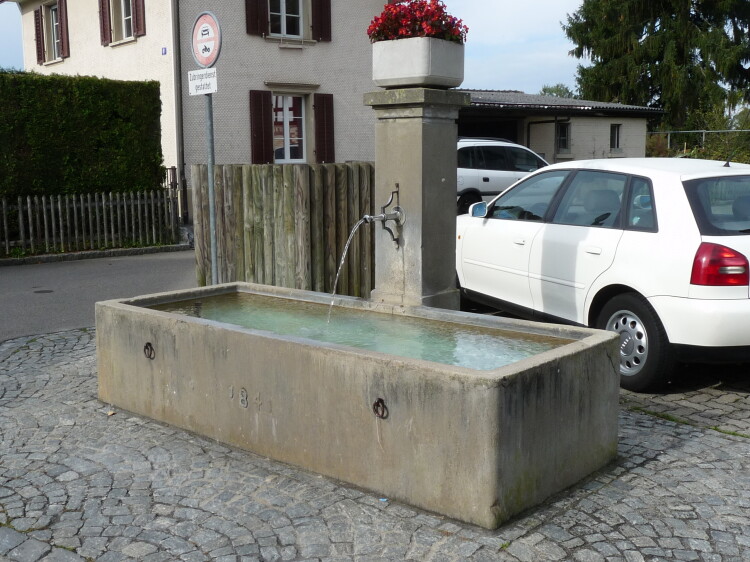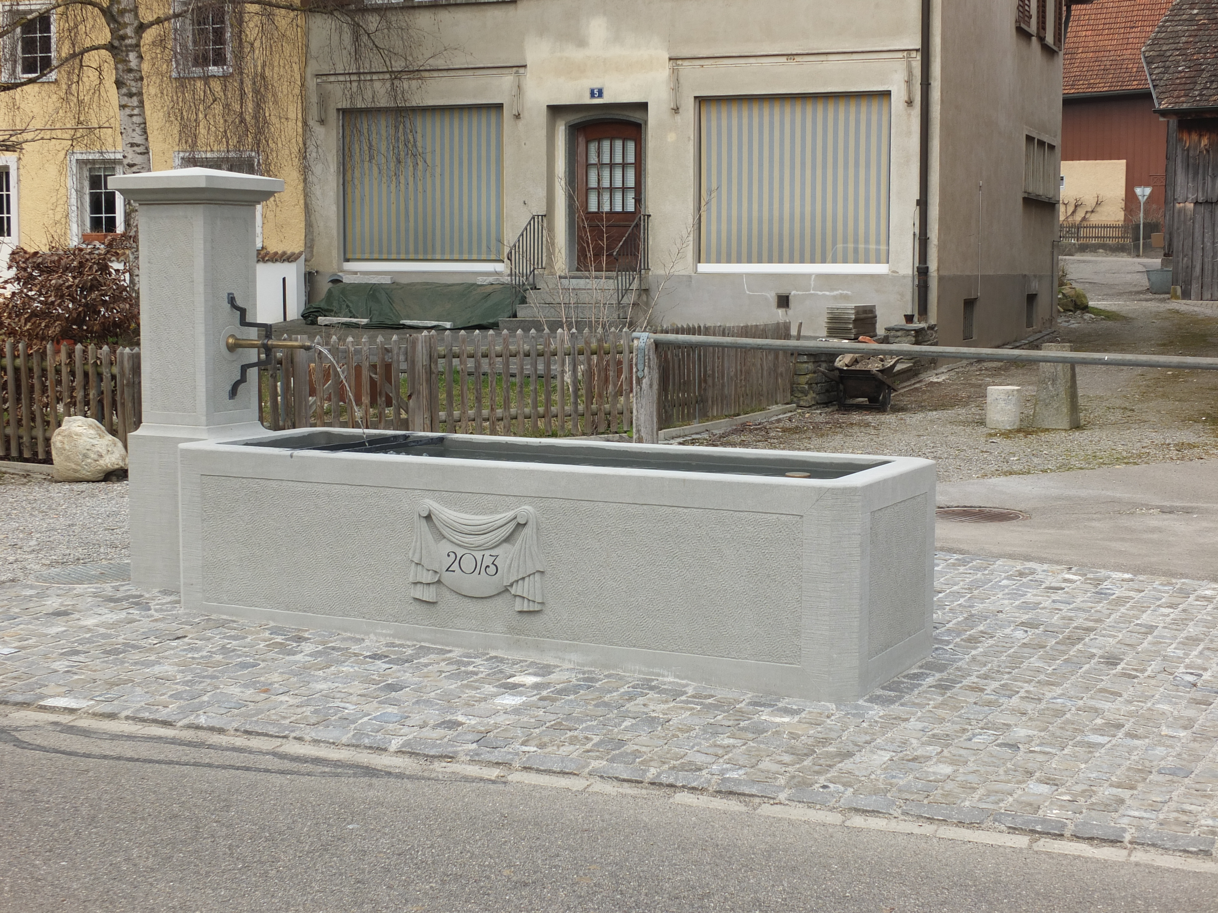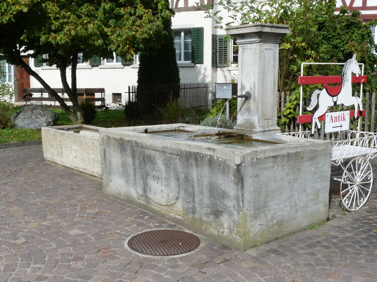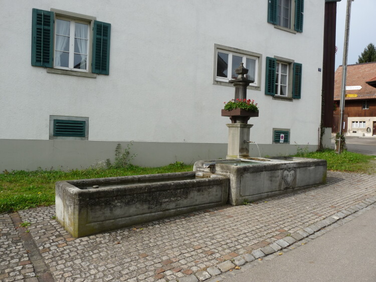Im Unterdorf beim Restaurant Frohsinn schliesslich steht wiederum ein Brunnen. Der Brunnen aus dem Jahr 1836 hatte zwei Becken und war als typischer Dorfbrunnen mit Viehtränke gestaltet. Er wurde 2013 ausgewechselt. Der neue Brunnen ist modern gestaltet, sein Auftreten passt aber gut in die Umgebung des Stadler Unterdorfes. Er ist im Atelier von Gregor Frehner entstanden. Eine Abbildung des ersetzten Brunnens ist in der Bildergalerie zu finden.