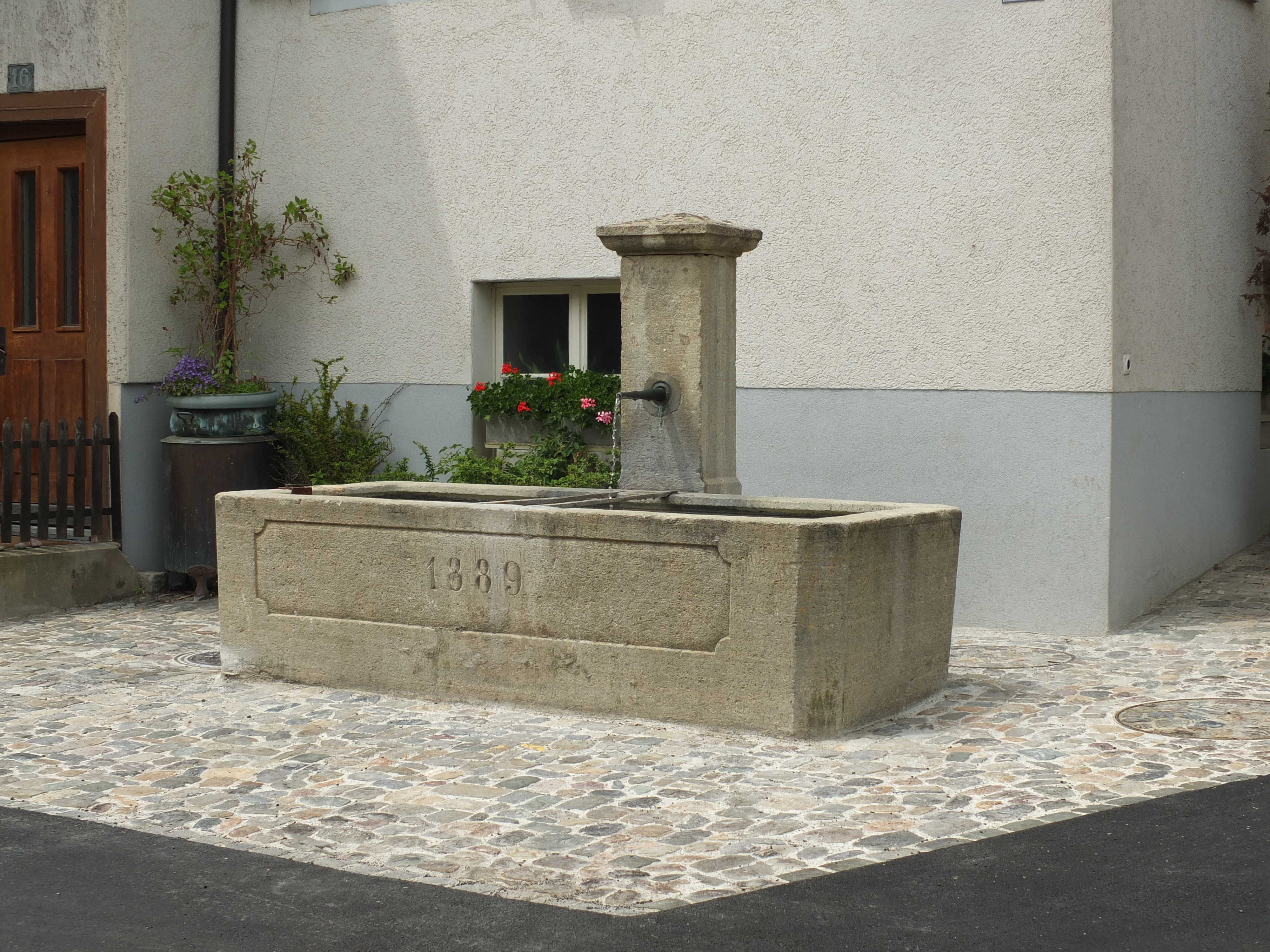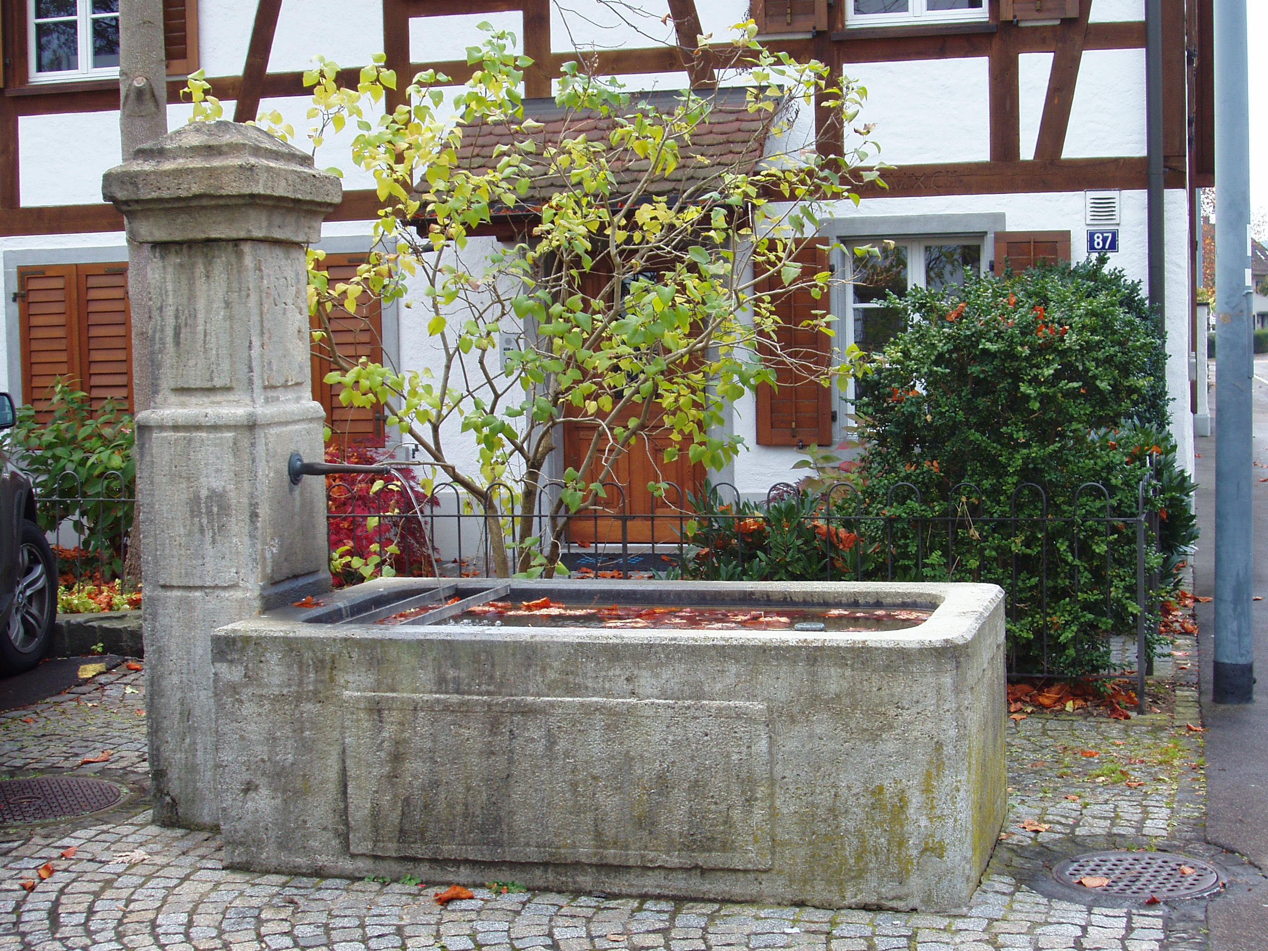 Aus einem Kalkstein, der in der Jurazeit vor etwa 150 Millionen Jahren entstanden ist, hat man zusammen mit der Neugestaltung des Delphinparkes beim Bahnübergang an der Feld-/Juchstrasse einen neuartigen Brunnen geschaffen und aufgestellt. Seine Herkunft sind vermutlich die Glarner Alpen, gefunden wurde er in einer Kiesgrube bei Dietlikon. Aufgestellt wurde er im Jahre 1957. Die Delphinskulptur in Bronze des Künstlers Rudolf Wening (1893-1970), welche dem Platz den Namen gab, wurde zusammen mit Findlingen in den Kiesplatz integriert und regt zum Spielen an. Diese Anlage konnte 2002 dank einem Legat des verstorbenen Veltheimers Robert Keller neu gestaltet werden (Gestaltung Rotzler Krebs Partner).