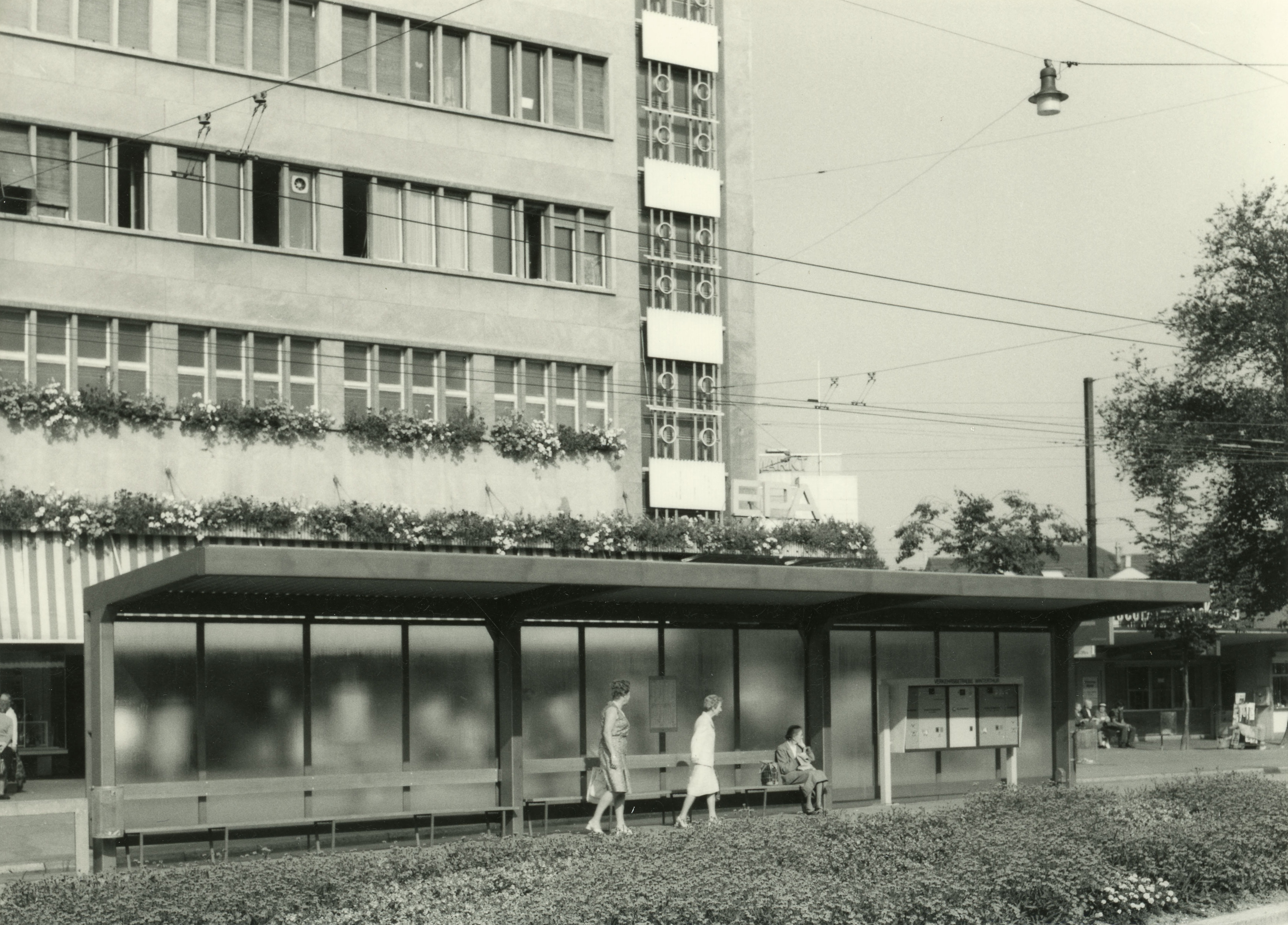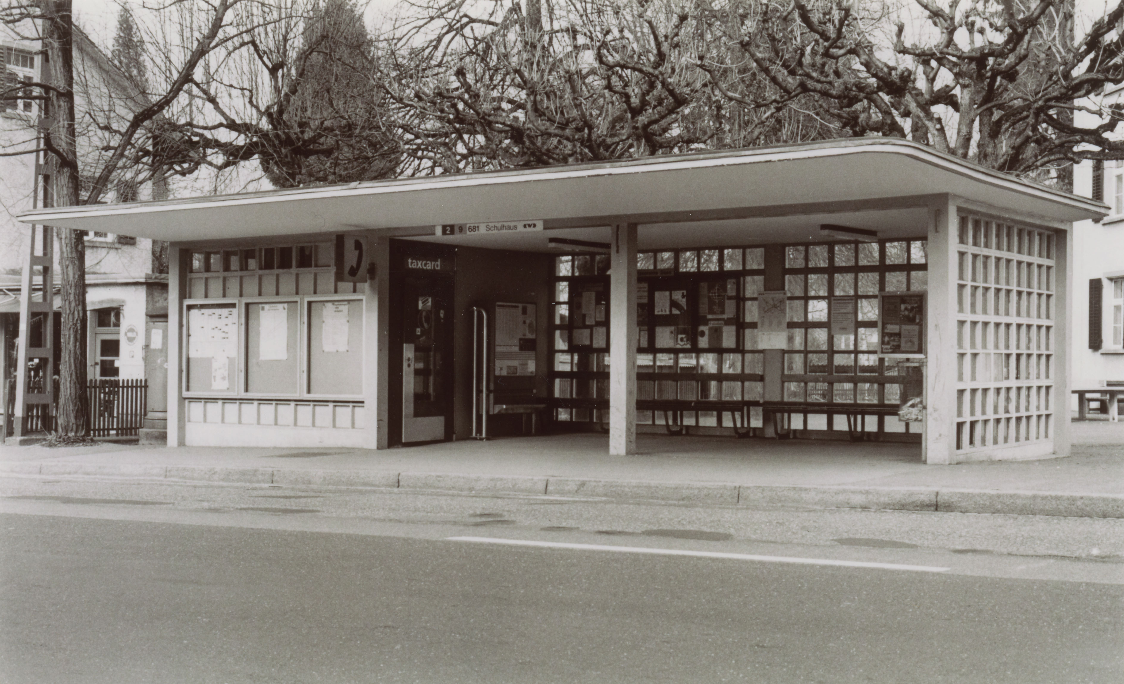 Auch Haltestellen des öffentlichen Verkehrs sind Zeugen ihrer Zeit. Aus der Amtszeit von Stadtbaumeister Arthur Reinhart haben drei Bushäuschen den Jahrhundertwechsel 2000 noch erlebt.