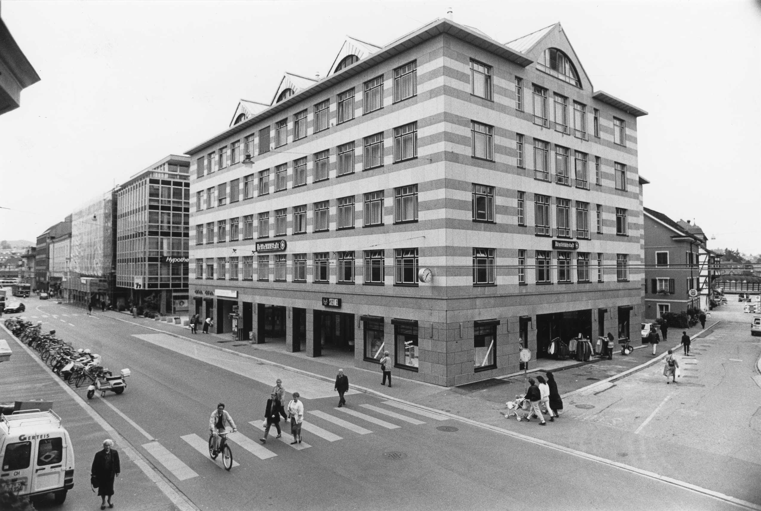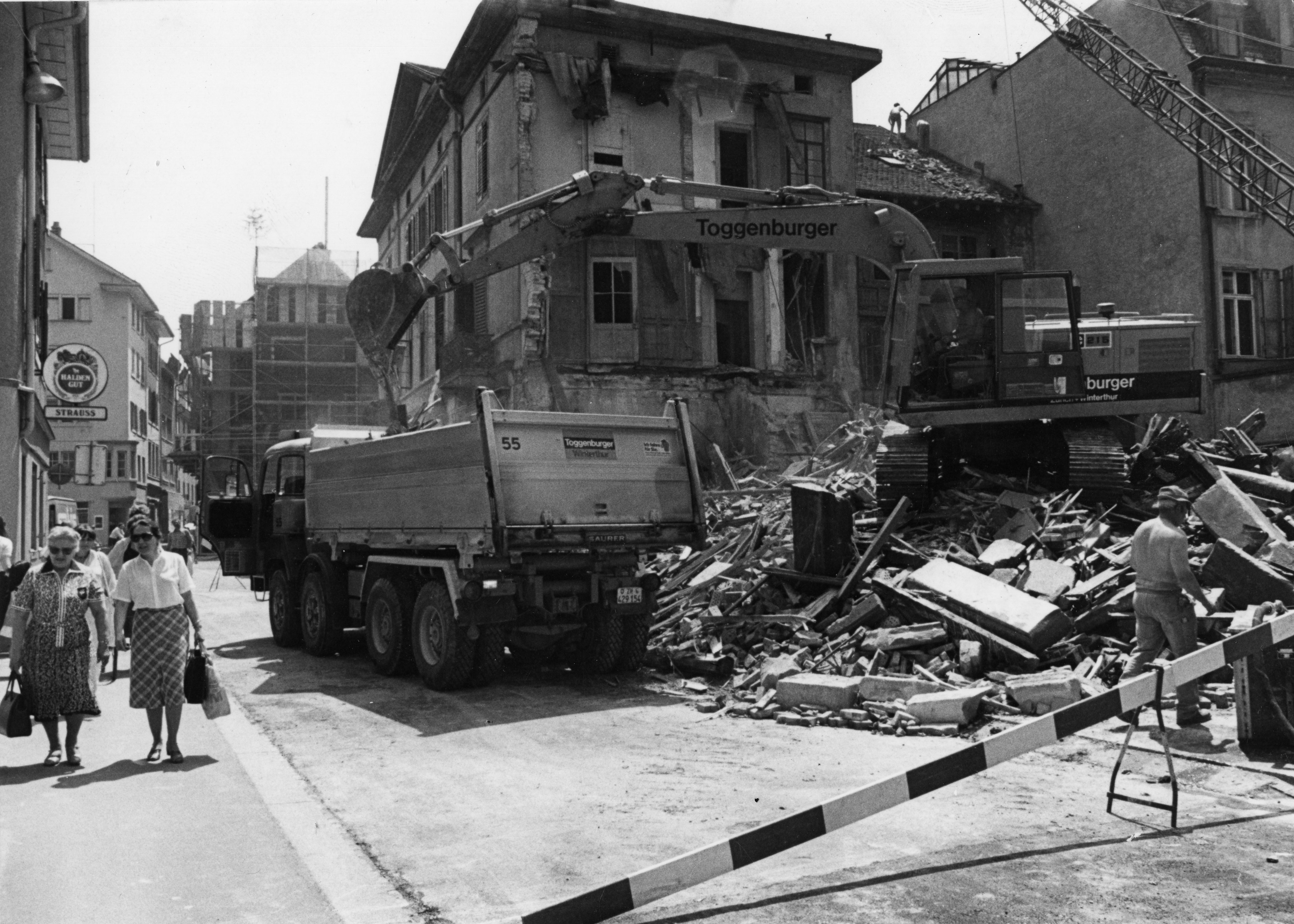 Gegen Ende des 19. Jahrhunderts begann Winterthur, ihre mittelalterlichen Mauern abzutragen und die Stadtgräben aufzufüllen. Das neu gewonnene Land wurde erstmals für den Wohnungsbau freigegeben. Entlang der ehemaligen Stadtgrenze entstand an der heutigen Stadthausstrasse eine Reihe repräsentativer Bauten des industriellen Winterthurs: das Stadthaus, das Knabengymnasium und mehrere Geschäftshäuser. Zu den ersten privaten Bauten an dieser neuen Prachtstrasse gehörte das 1840 errichtete Haus zum Delphin.