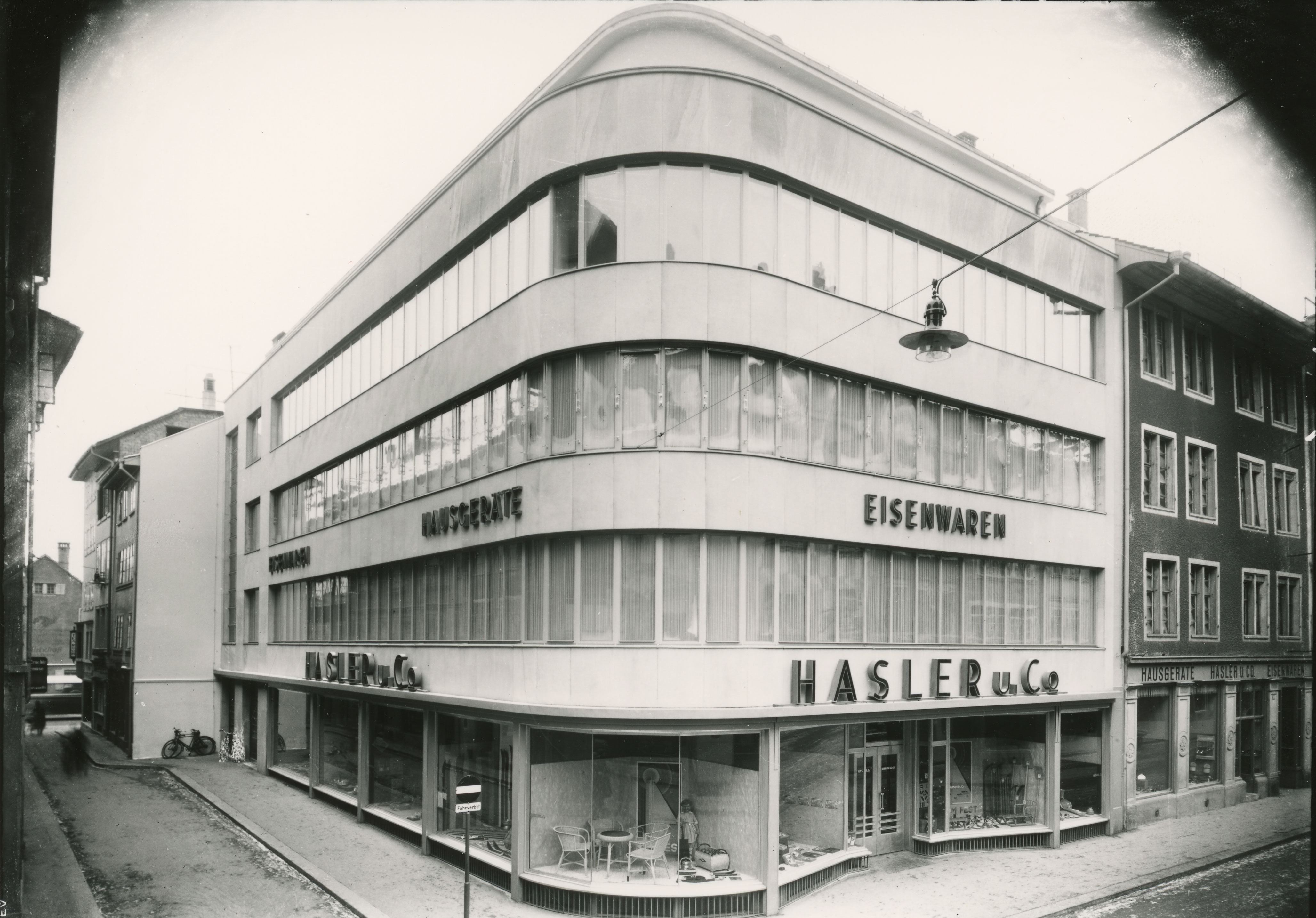 Die Gründung des Winterthurer Traditions-Familienunternehmens Hasler geht auf das Jahr 1853 zurück. Damals legte Kupferschmid Arbenz den Grundstein zu einem Handelsunternehmen. Heinrich Hasler heiratete Laura die Tochter von Kupferschmid Arbenz und führte das Geschäft erfolgreich weiter. 80 Jahre später baute das Unternehmen an der Marktgasse ein Warenhaus. Für damalige Verhältnisse riesig und in einer kühnen Architektur. Noch heute existiert das runde Eckhaus, das damals für einigen Gesprächsstoff in der Stadt sorgte. Nach dem Domizilwechsel von Hasler, waren an der Marktgasse 70 das Warenhaus Jelmoli und später die Modekette C&A eingemietet.