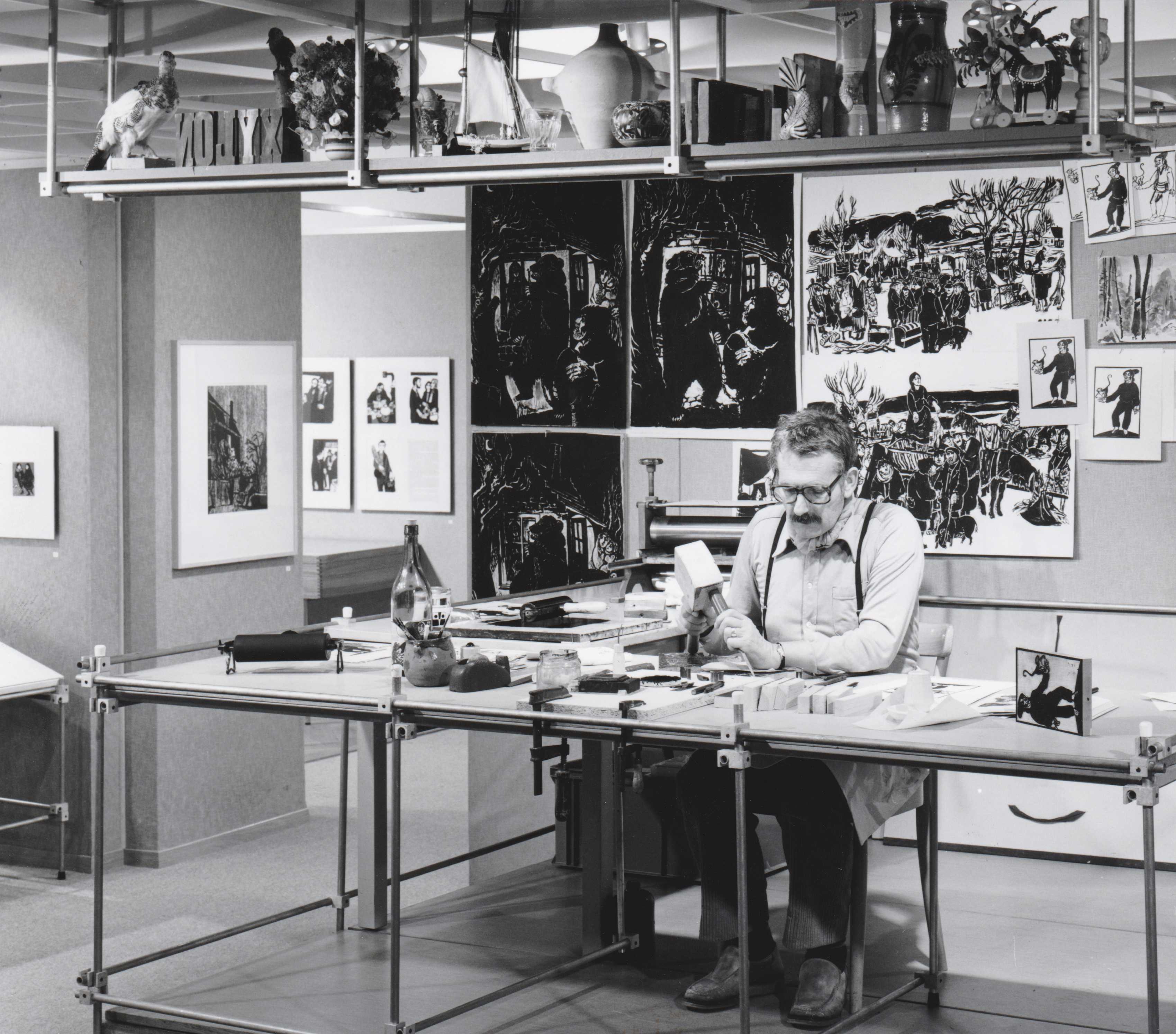 1960 trat Heinz Keller der internationalen Vereinigung der Holzschneider:innen Xylon bei. In dieser Zeit entstanden auch seine ersten grossformatigen Holzschnitte. Ein Jahr später gründete er gemeinsam mit Heinz Engel und Walter Kerker die Fachzeitschrift Xylon, die Originalholzschnitte publizierte. Dafür nutzten sie eine alte Heidelberger Schnellpresse in Winterthur.