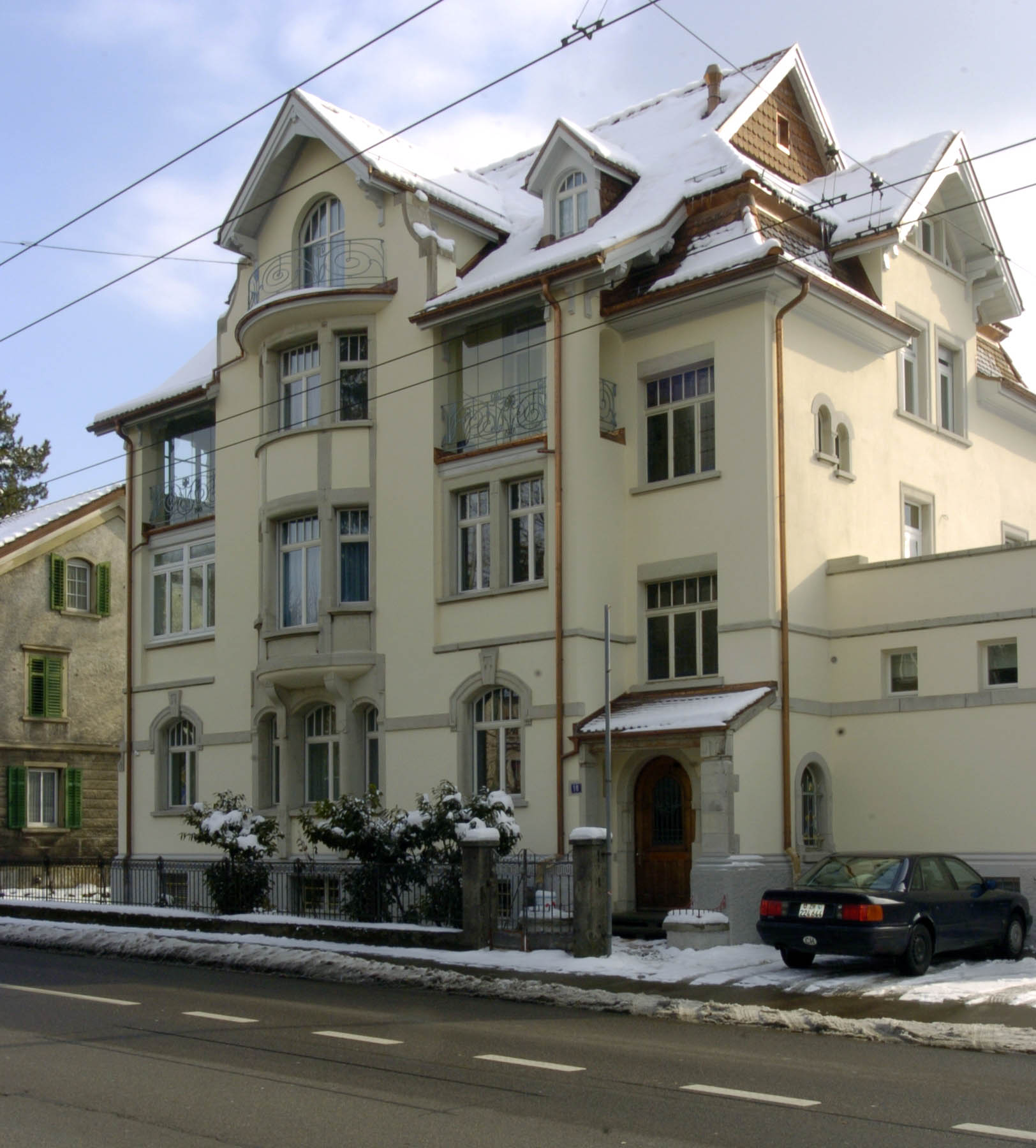 Das Wohn- und Geschäftshaus ist einer der wenigen reinen Jugenstilbauten in Winterthur. Gegen die Strasse präsentiert sich ein überhöhter Mittelrisalit mit einem über zwei Geschosse laufenden Erker, der im Dachgeschoss als Balkon endet. In Keller, Erdgeschoss und dem angebauten Magazingebäude wurde einst Wein und Kolonialwaren verkauft. Auf Grund alter Baupläne und den Spuren an der Fassade wurde die ursprüngliche Fenstereinteilung mit den zeittypischen gesprossten Oberlichtern rekonstruiert. Freiere Hand hatte der Architekt bei der Gestaltung der Räume im Parterre und im ersten Untergeschoss. Die den Raum unterteilenden Säulen wurden entfernt und für verschiedenste Anlässe nutzbare Säle sowie eine grosse Küche eingerichtet.
