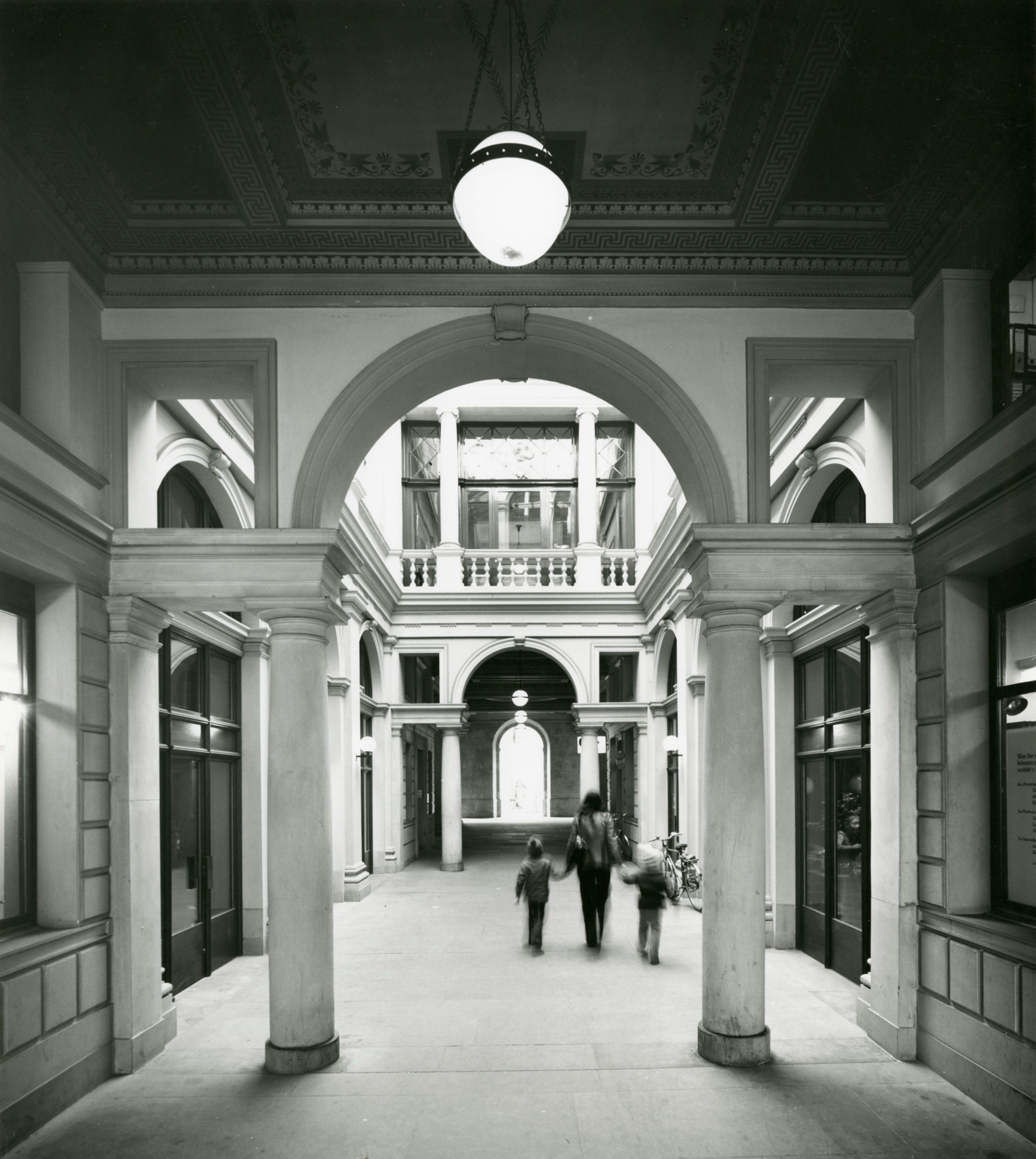 Die Hauptidee war ein öffentlicher Durchgang zur neuangelegten Museumstrasse (heute Stadthausstrasse). Achtzehn Verkaufslokale zogen ein, Bazar im Volksmund genannt. Im ersten Stock Vorderhaus bekam das Schwurgericht seinen Saal, darüber das Bezirksgericht, im Hinterhaus zogen Statthalteramt, Bezirksrat und Gerichtkanzlei ein. 1895 wurde ein 45-köpfiger Grosser Rat geschaffen und somit zog das Parlament ins Rathaus ein. Ab 1922 (Stadtvereinigung) hielt der nun 60 Mitglieder zählende Grosse Gemeinderat seine Sitzungen im Rathaus ab. 1932 zogen Bezirksgericht und Statthalteramt an die Lindstrasse in den ehemaligen Sitz der Unfall (Winterthur Versicherungen). Der Platz wurde künftig durch die städtischen Amtstellen Friedensrichteramt und Berufsberatung genutzt. Ab 1945 befasste man sich wieder mit Renovationsplänen. Die schwierigen Verhältnisse (Platzverhältnisse, schützenswerte Bauteile) liessen aber erst ab 1968 eine Umgestaltung zu. Den gordischen Planungsknoten hatte der damalige Stadtbaumeister Karl Keller gefunden.