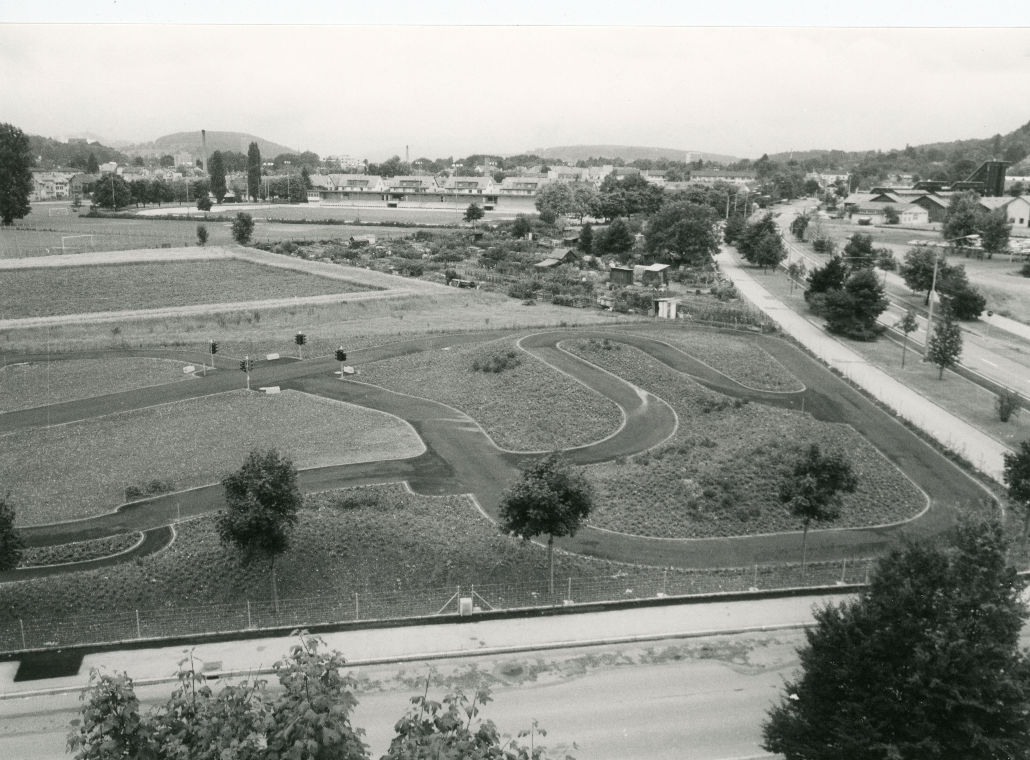 Die Geschichte des Winterthurer Verkehrsgarten begann 1959, als auf dem grossen Pausenplatz des Schulhauses Schönengrund ein Verkehrsgarten angelegt wurde. Bald schon zeigte sich, dass dieser Minimalstandard den gewachsenen Anforderungen für eine Schüler-Verkehrsausbildung nicht mehr genügt. 1977 wurde ein echten und komfortabler Verkehrsgarten mit den Erstellungskosten von Fr. 227‘000.00 errichtet und 1978 eröffnet. Platziert wurde er im damals aufstrebenden Gutschick-Quartier, bei der Strassen-Kreuzung Scheideggstrasse/Grüzefeldstrasse. Mehr als dreissig Jahre später wurde bei der nahen Eishalle die Planung für ein neues Eissportzentrum in Angriff genommen. Schnell war klar, dass der Verkehrsgarten diesem neuen Projekt weichen muss. Sie war ja auch bereits etwas in die Jahre gekommen und eine Erneuerung stand ohnehin an.