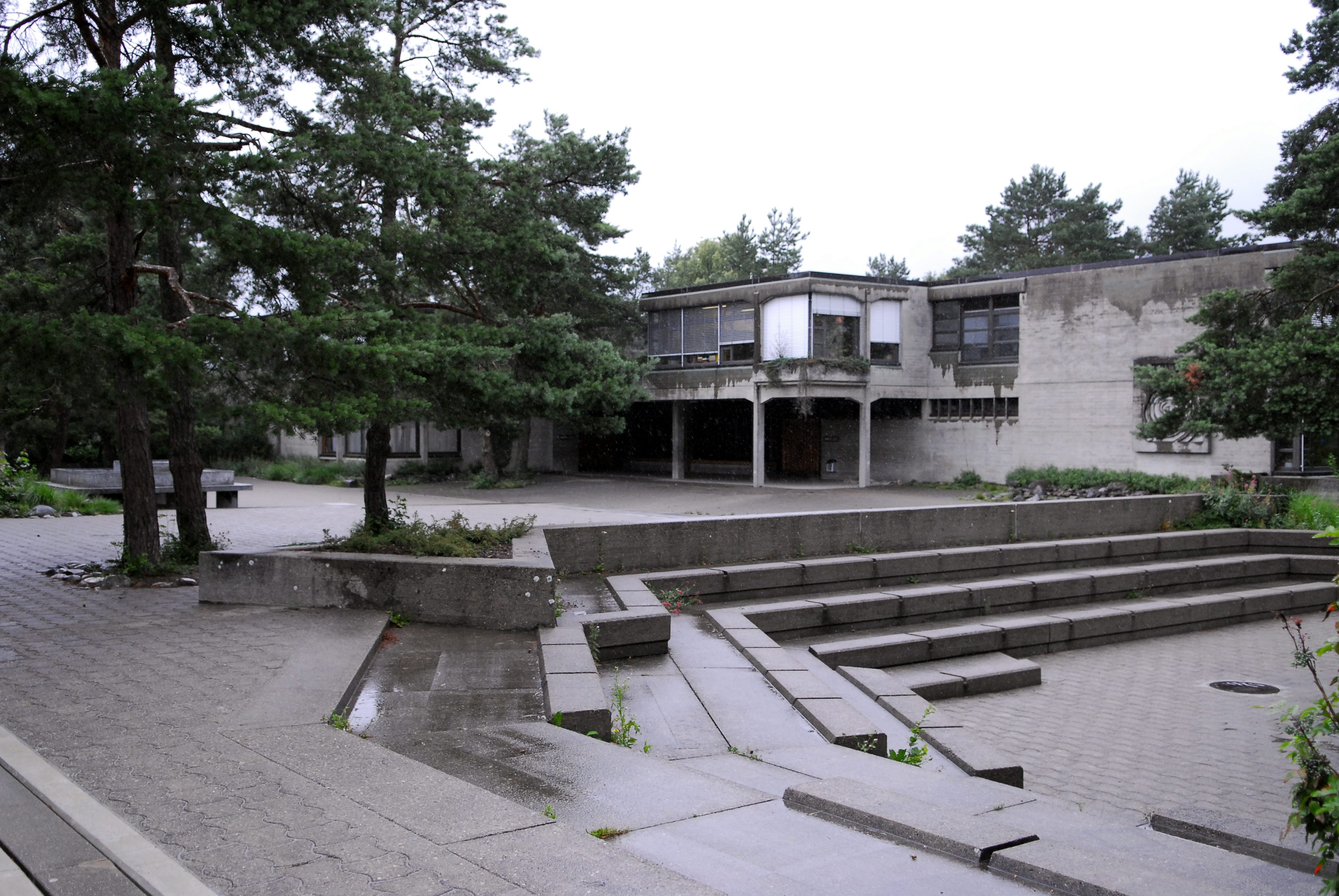 Bestimmend für das Konzept dieses Schulhauses war das Kind mit seinem offenen Sinn für das Einfache und das Klare. Durch das Aufgliedern in einzelne Baukörper erhielt die grosse Anlage mit 18 Klassenzimmern und einem Kindergarten den Charakter eines Kinderdorfes. Nach aussen treten die 1967 in Betrieb genommenen Bauten dreigeschossig, gegen die Innenhöfe zweigeschossig in Erscheinung. Um das kindliche Gemüt nicht zu verletzen, wurde jede Monumentalität vermieden. Besass anfangs unsers Jahrhunderts ein Schulhaus Ehrfurcht gebietende Ausdrucksformen, wurde diese Schule in allen Teilen einfach und dem kindlichen Massstab angepasst verwirklicht. Diese angestrebte Einfachheit diente dabei aber nicht als Vorwand für Fantasielosigkeit und Uniformität.
