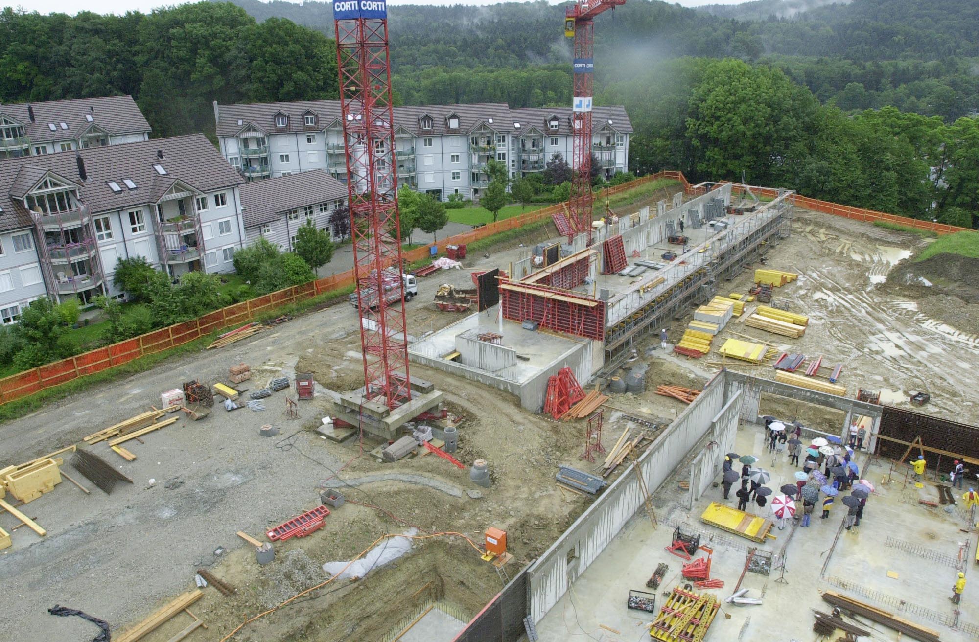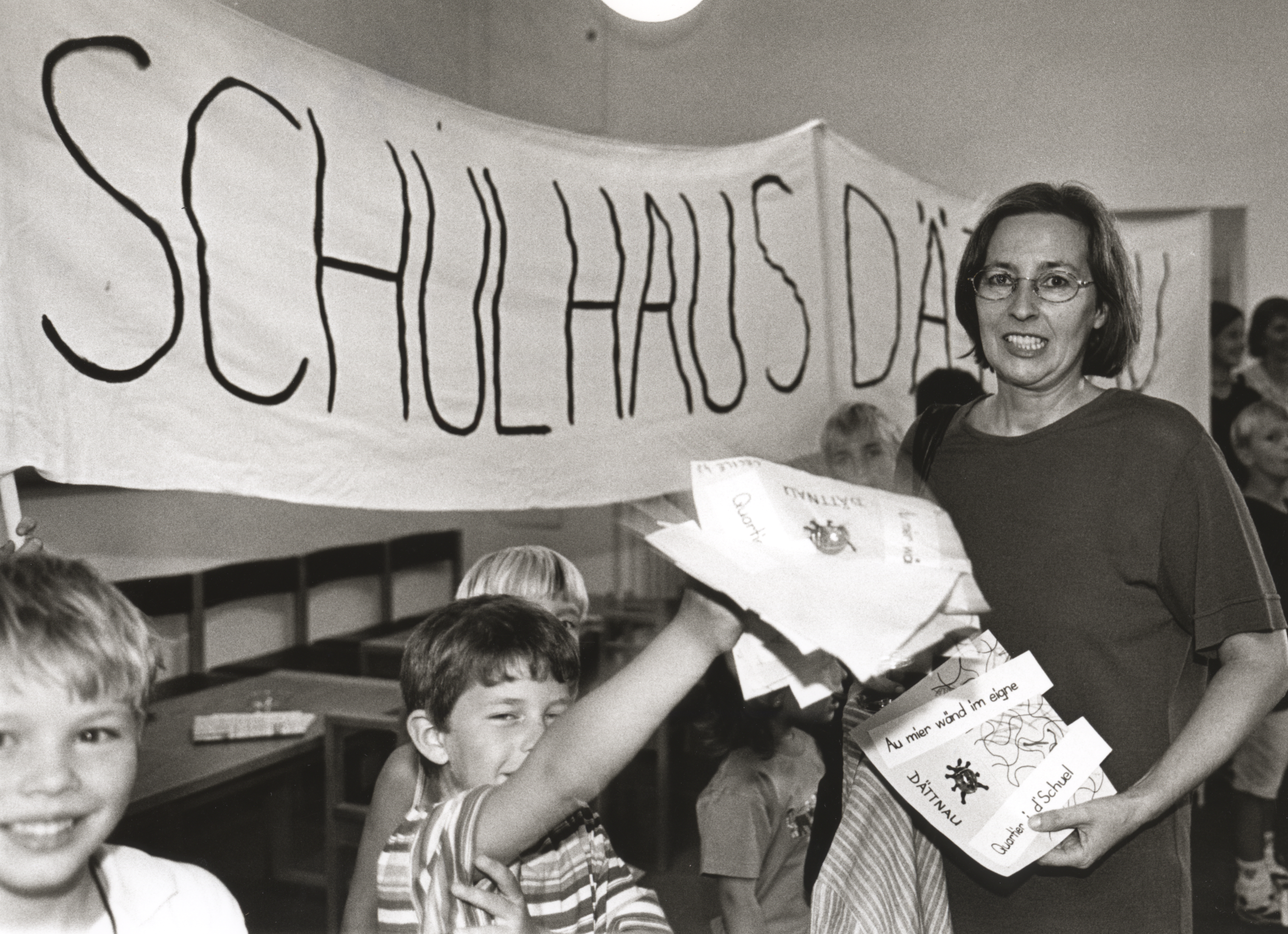 Der Kindergarten Steig reichte als Erstes nicht mehr aus, um alle Kinder aus dem Dättnau aufzunehmen. Daher baute die Stadt 1994 einen Doppelkindergarten an der Hündlerstrasse. Im Rahmen der Schulraumplanung 1994 rechneten die Behörden bei einem Vollausbau des Dättnaus mit 3'500 Einwohner:innen. Dabei stellte sich heraus, dass das Schulhaus nicht nur auf die Bedürfnisse der Kinder Rücksicht nehmen sollte, sondern auch Betätigungsmöglichkeiten für die Menschen aus dem Quartier bieten sollte. Mit Ausnahme einer Freizeitanlage verfügte das Dättnau in den 1990er-Jahren über keinerlei öffentliche Infrastruktur wie beispielsweise einen Laden, eine Post, ein Café oder eine Turnhalle. Bereits bei der Planung war klar, dass die bestehenden Strukturen nicht ausreichen würden, bis das neue Schulhaus fertiggestellt ist. Deshalb beantragte der Stadtrat 1997 einen Kredit von 360'000 Franken für den Bau eines Zweiklassenpavillons beim Schulhaus Gutenberg.