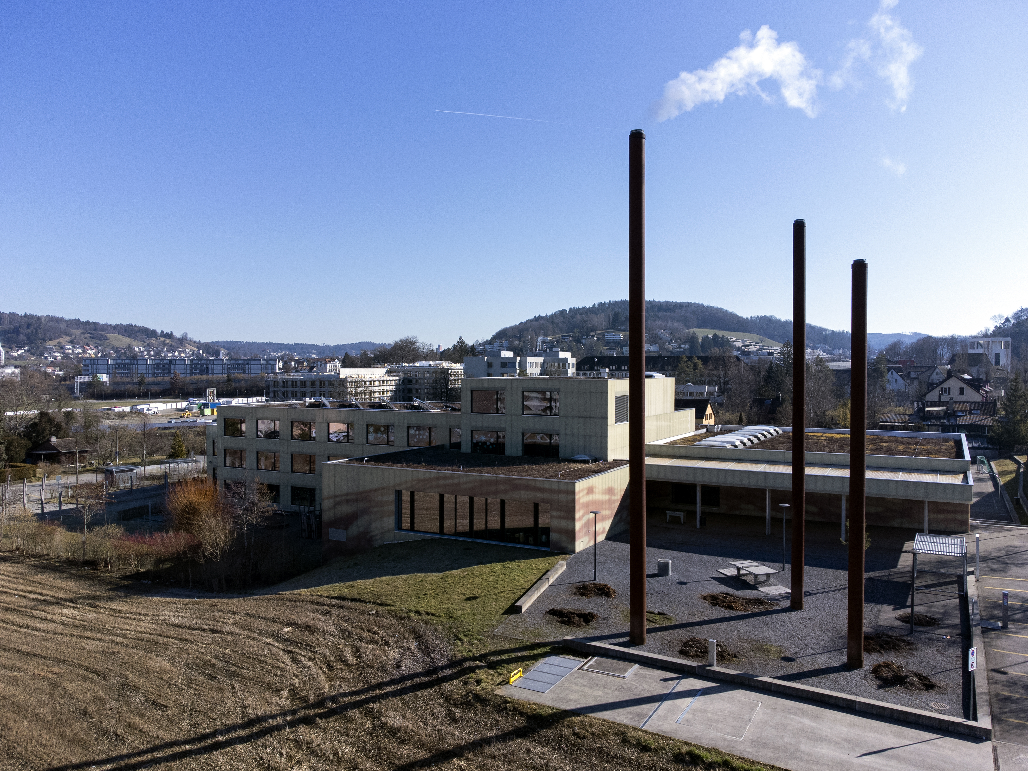 Der Neubau des Schulhauses Wyden umfasst 12 Klassenzimmer und mit den dazugehörigen Ne-benräumen sowie einer Doppelturnhalle und kann auf 16 Klassenzimmer erweitert werden. Neben dem Schulhaus befinden sich die Spielfelder für Fussball und Basketball. Das Schulhaus Wyden ist als Minergie-P-eco Bau konzipiert und nimmt somit den Grundgedanken der 2000 Watt Gesellschaft auf. Durch die gut gedämmte Bauhülle (40 cm Isolation in der Fassade) sowie dem sommerlichen Wärmeschutz ist ein angenehmes Raumklima gewährleistet. Eine Komfort-lüftung sorgt mit kleinstmöglichem Energieverlust für die benötigte Frischluft. Die durch Stadtwerk separat erbaute fast Co2-neutrale Holzschnitzel-anlage liefert die benötigte Wärme. Als Unterstützung für den Wärme-Energiebedarf wird auf dem Dach eine Sonnenkollektorenanlage installiert.