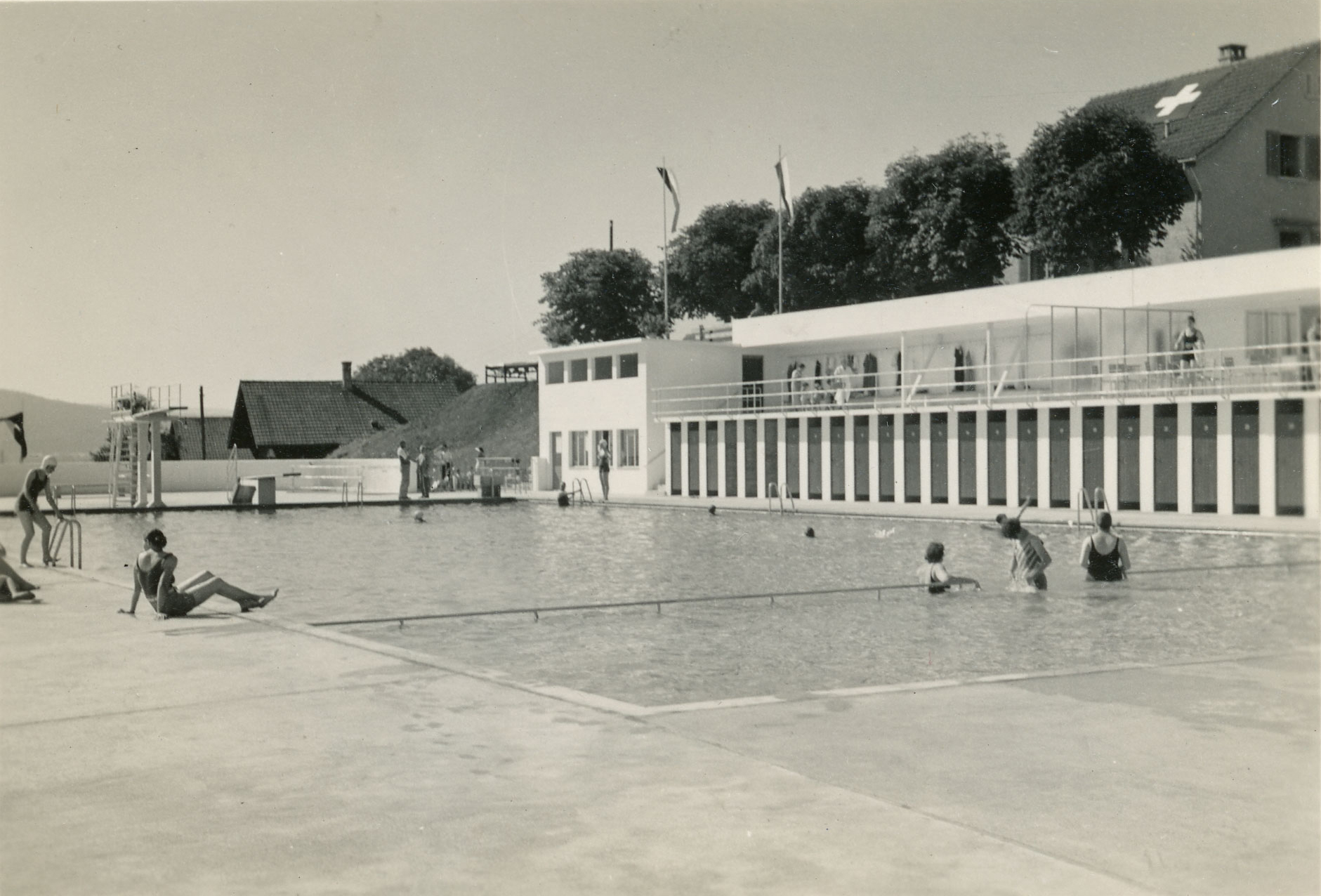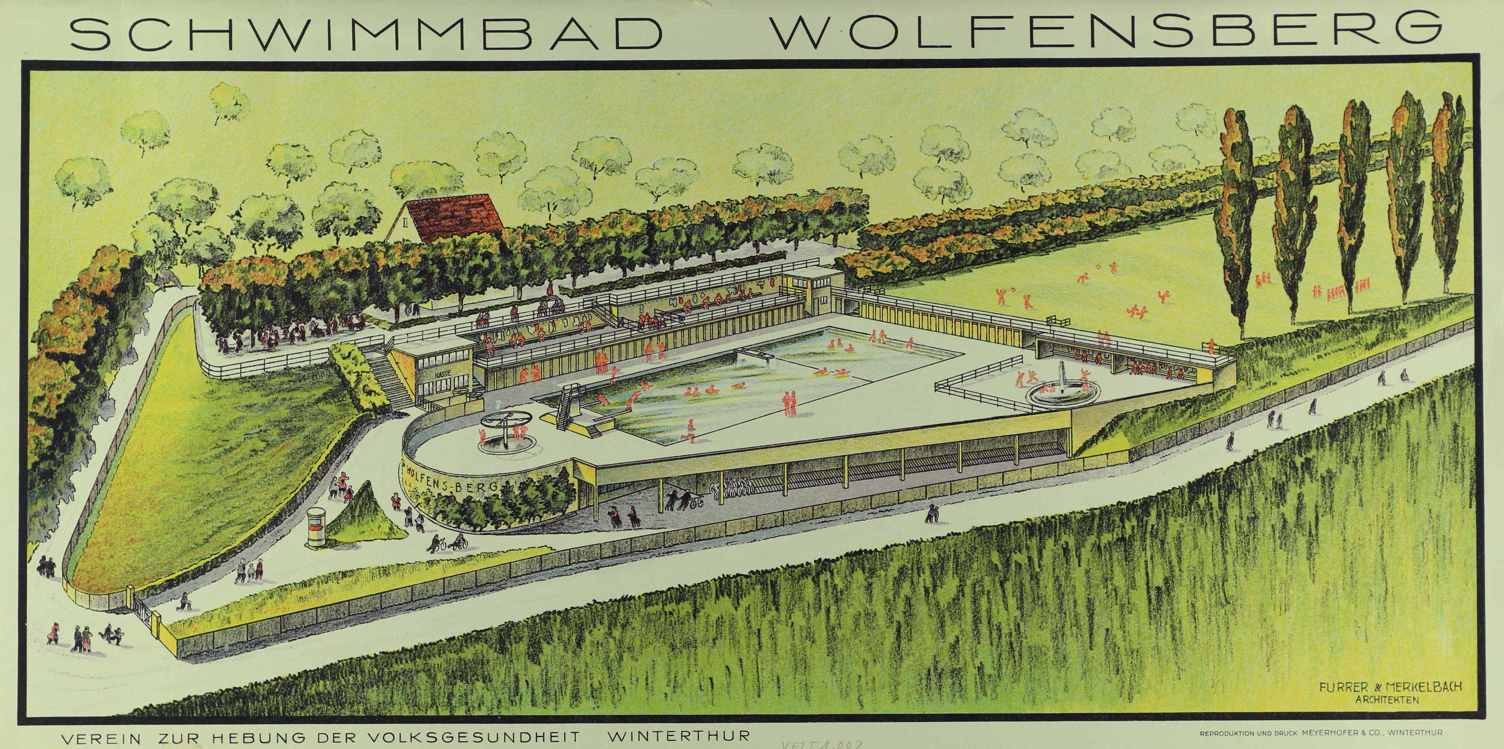 Entwurf der Architekten Furrer & Merkelbach für das Schwimmbad Wolfensberg in Winterthur, 1935