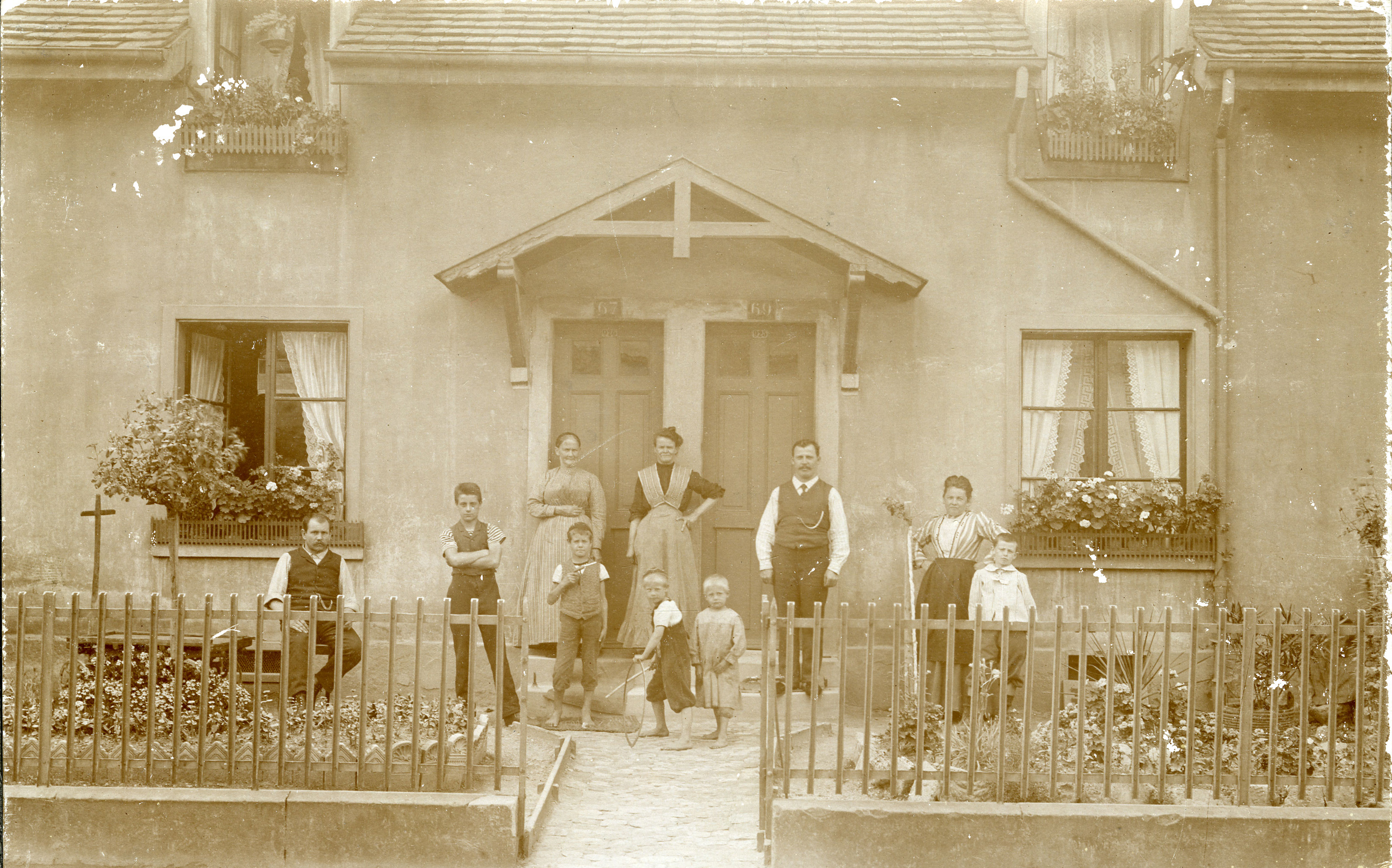 um 1909: Häuser an der Jägerstrasse 67-69 mit Bewohnern
