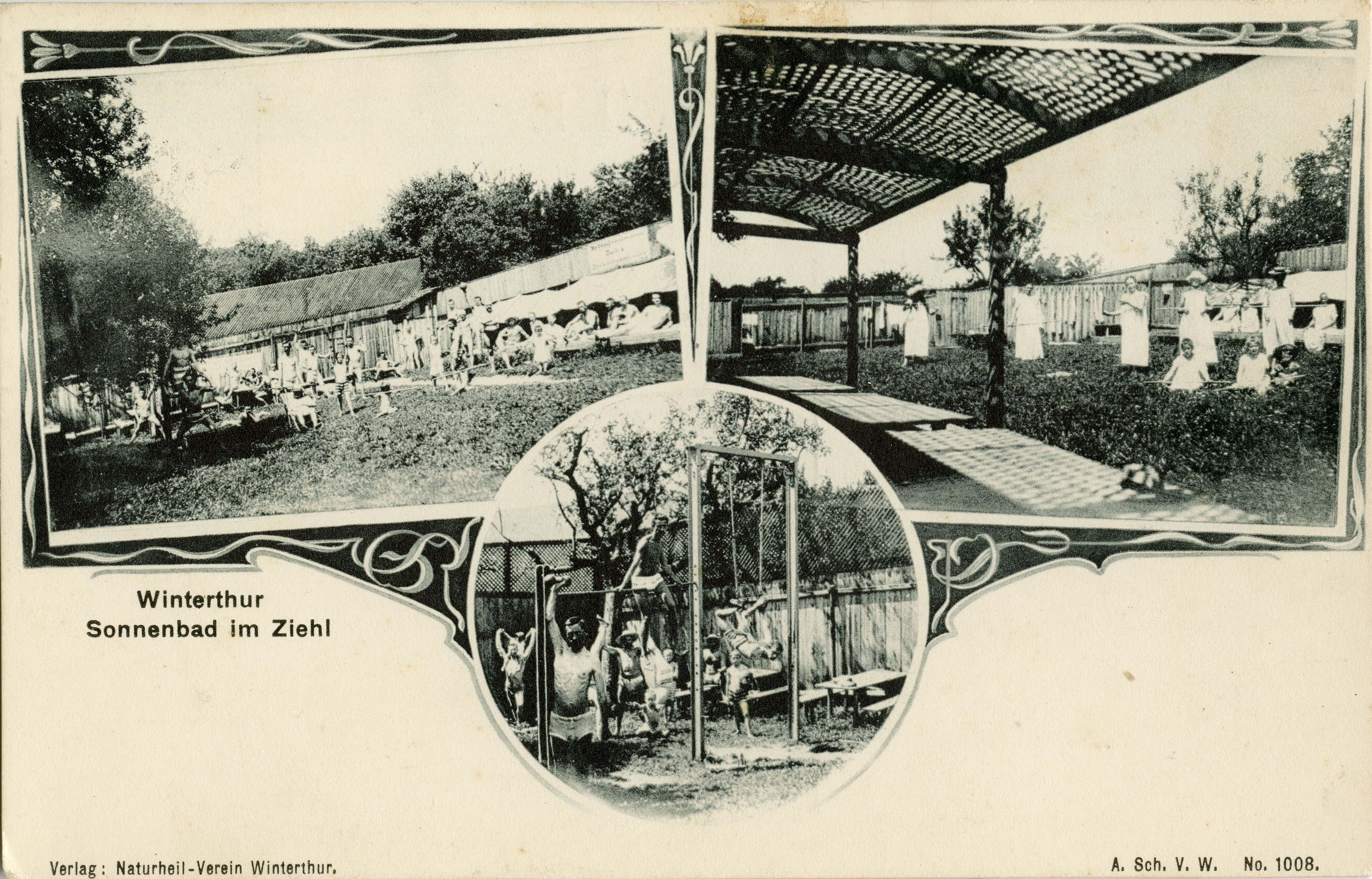 Im Jahr 1900 eröffnete der Verein zur Hebung der Volksgesundheit, Sektion Winterthur, im „Ziel“ in Veltheim ein Sonnenbad. In lockeren Kleidern machten hier die Vereinsmitglieder – strikte nach Geschlecht getrennt – Leibesübungen und Spiele, oder sie genossen einfach die Strahlung der Sonne. Es war dies die erste Anlage dieser Art in der Schweiz. Das Ziel des Vereins (heute vitaswiss) war die Aufklärung über eine gesunde, naturnahe Lebens- und Heilweise. Die Arbeiter sollten heraus aus ihren düsteren Wohnungen und an die Sonne, sich bewegen, gesund ernähren, möglichst auf Alkohol und Tabak verzichten und bei Krankheit Naturheilmittel anwenden. Der Verein verkündete aber keine dogmatische Heilslehre, sondern setzte sich pragmatisch dafür ein, dass seine Mitglieder auch Gelegenheit erhielten, nach diesen Prinzipien zu leben.