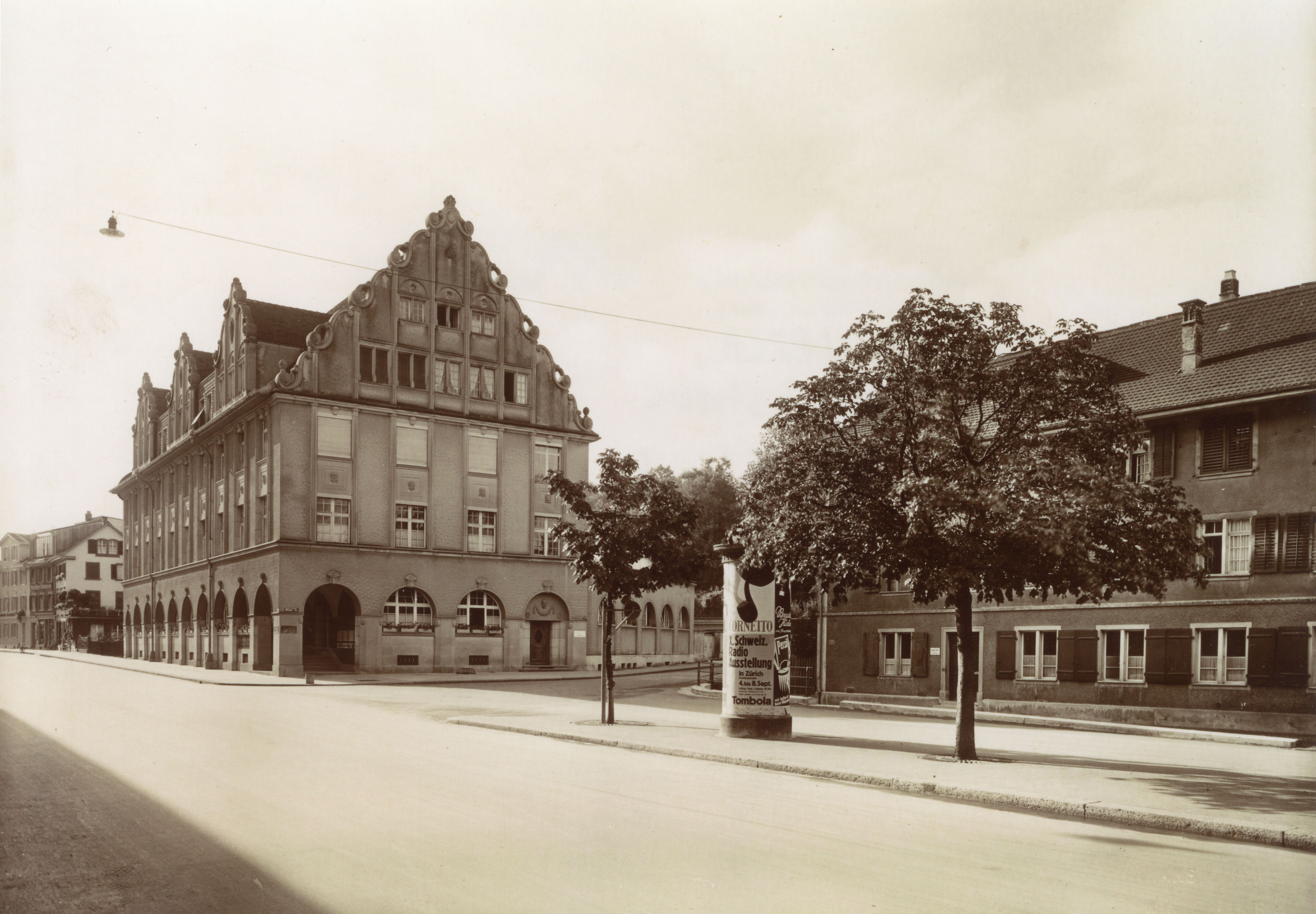 um 1918: Technikumstrasse, ehemals Eulachstrasse, Archplatz, Haus Rietermühle, Druckerei Winterthur, erbaut 1916/17