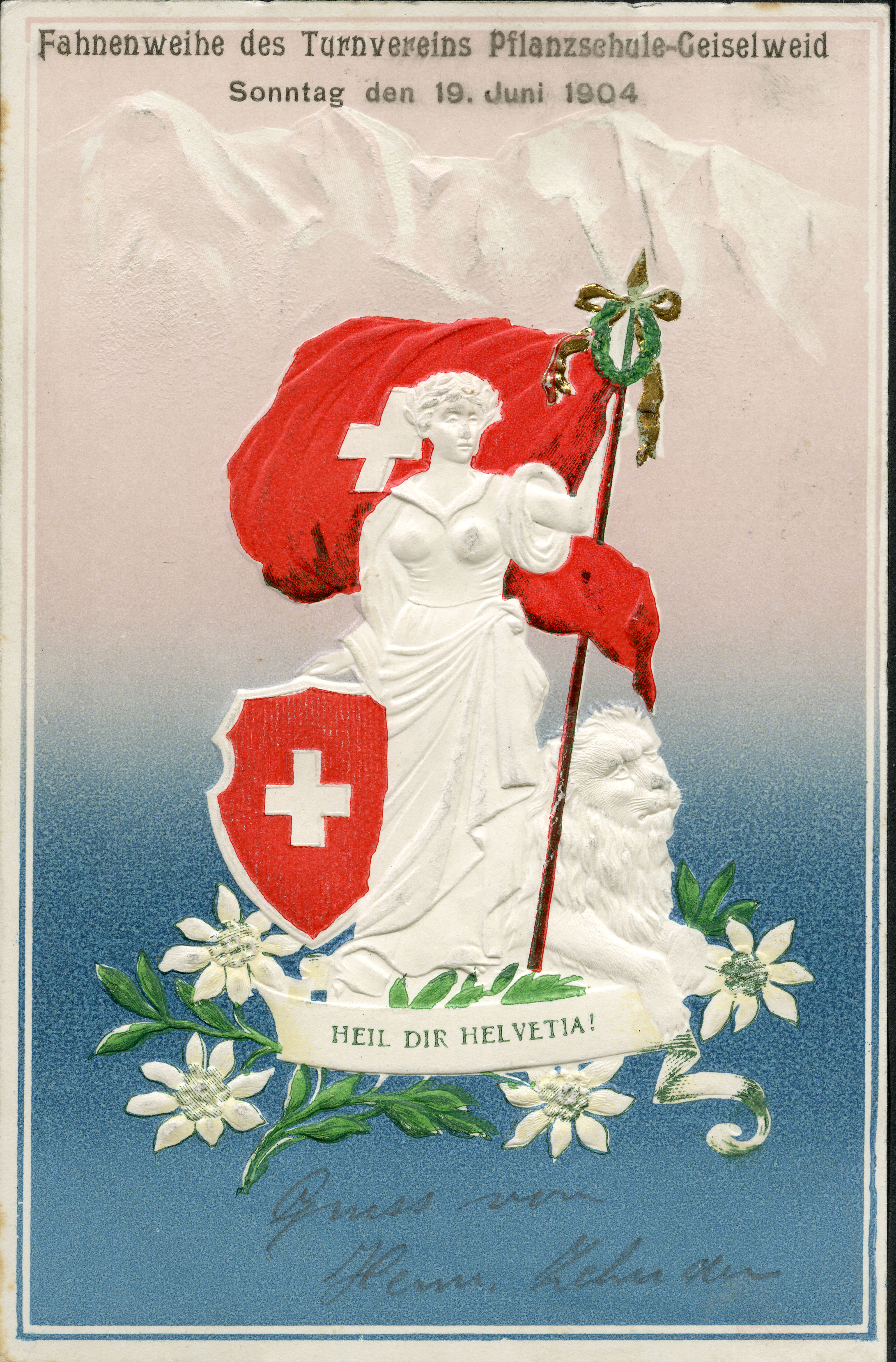 1904: Turnverein Pflanzschule-Geiselweid, Fahnenweihe am 19. Juni 1904, mit handschriftlichem Text
