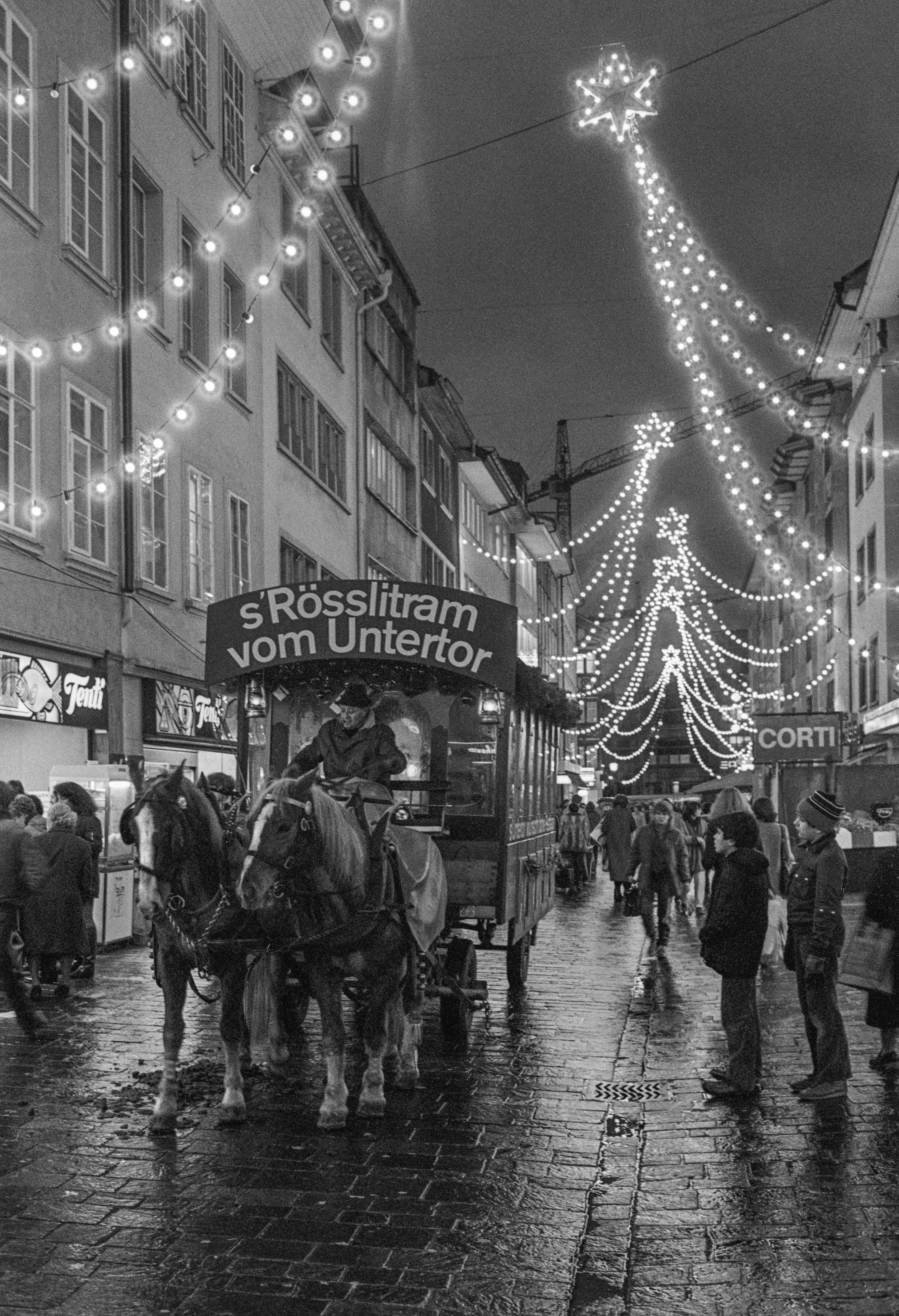 Im Jahr 1954 initiierte und finanzierte die Untertor-Vereinigung die erste Weihnachtsgassenbeleuchtung in Winterthur. Mit einer Investition von 14'500 Franken liess sich die Vereinigung den Weihnachtsschmuck ordentlich etwas kosten. Die Stadt zeigte sich wohlwollend und erhob lediglich eine geringe Gebühr von fünf Franken. Zusätzlich beteiligte sie sich jährlich mit einer kleinen Entschädigung von 300 Franken an den Kosten.